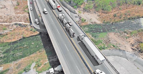 En el puente del Libramiento Noreste, a la altura del sector Paraje San José, también se observaron áreas del cauce con agua oscura y residuos.