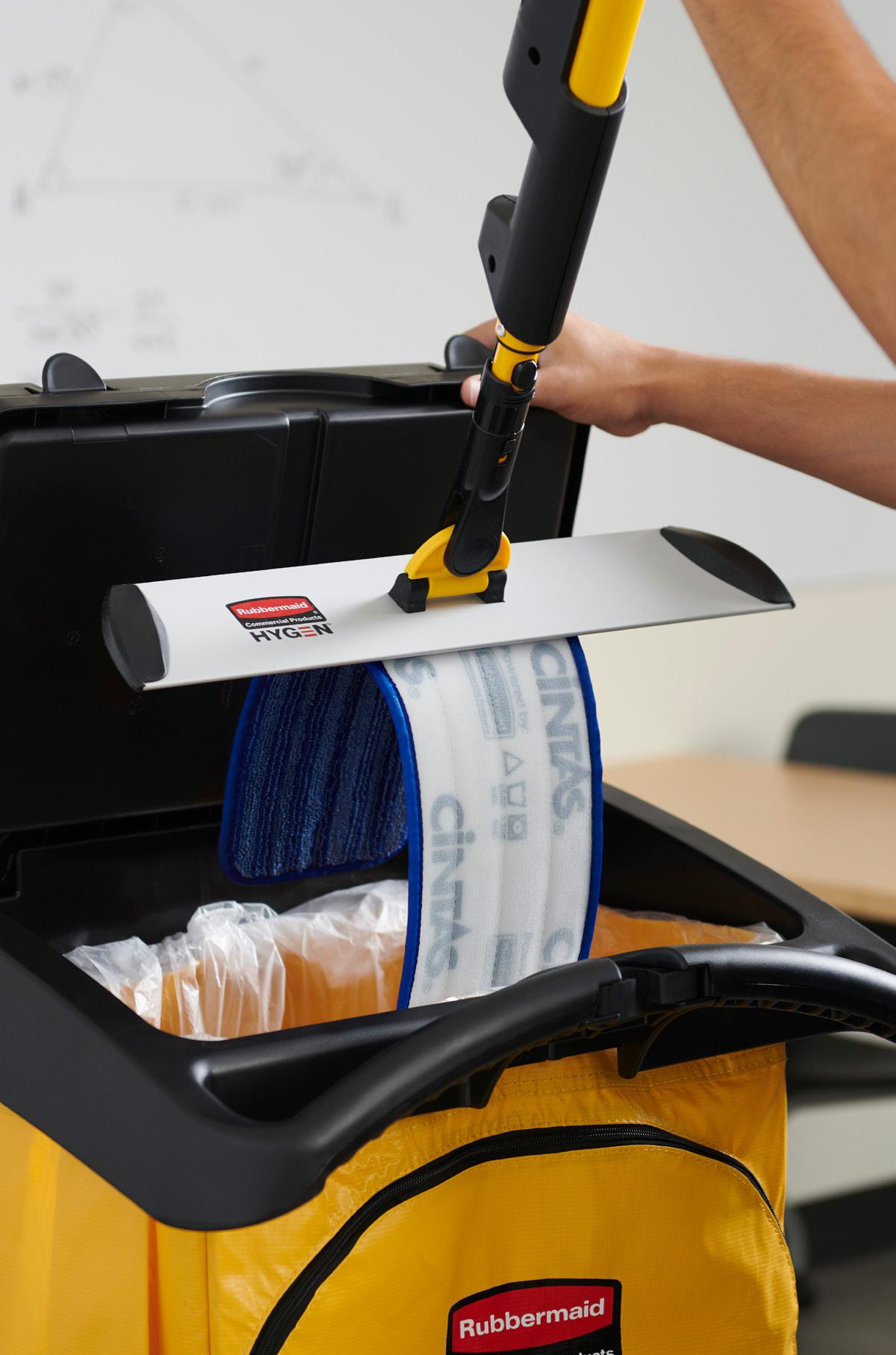 HYGEN™ PULSE™ Microfibre Mop offers schools an ergonomic, bucket-less mopping system for faster, efficient cleaning on all floor types. The onboard reservoir holds enough solution to clean 97m²