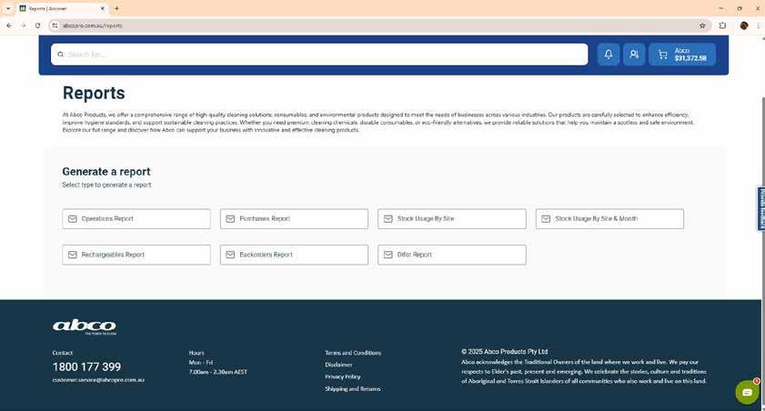 abconet offers a range of insightful reports that will help you optimise your ordering processes. From actual vs. budget to consumable tracking per site - we’ve got you covered. The live reports function, gives you valuable insights on consumption habits which empowers your team to be proactive in reducing costs, and ensuring contract costs don’t exceed budgets. You can also request a report to be sent to your inbox instantly, or you can schedule any of the reports to be delivered to your inbox on a regular basis.