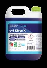 e-Degrease X is a microbe and enzyme-based, no rinse cleaner formulated to permanently remove grease and fat from slippery oors and kitchen fabrics. The low slip cleaner makes oors less slippery and hazardous, and can be used safely on most su aces. Also suitable for cleaning kitchen fabrics such as cleaning cloths and mop heads.