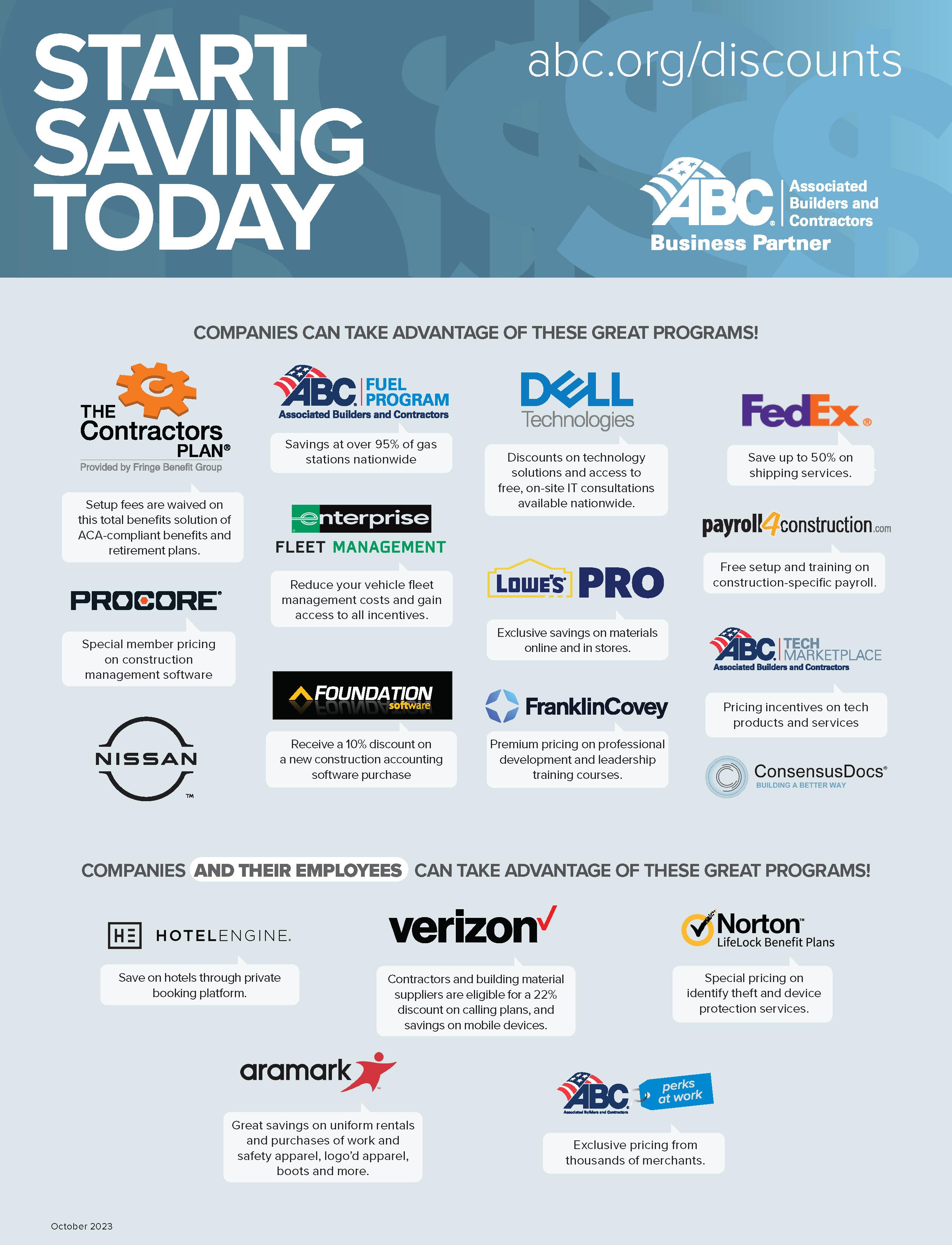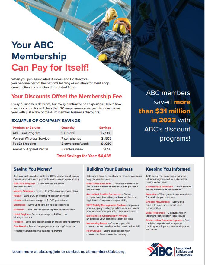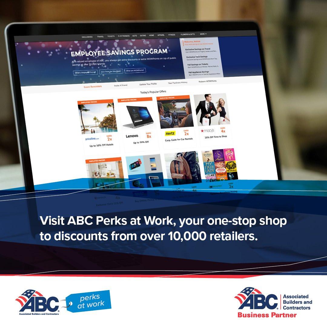 Exclusive opportunities and discounts for ABC Members only. ABC Trust Insurance, TECH Marketplace, Fuel Program, Business Discount Programs for Members and Employee Perks.