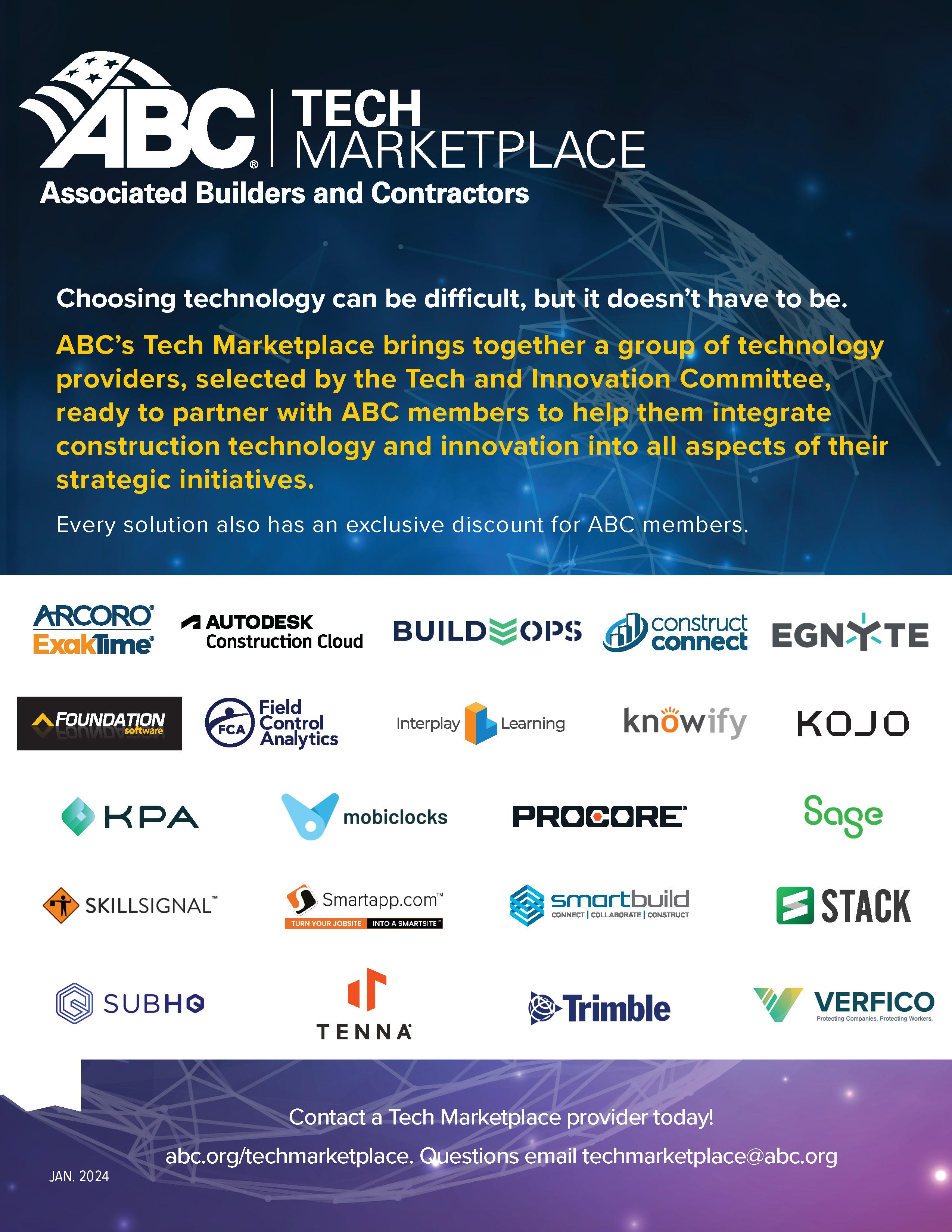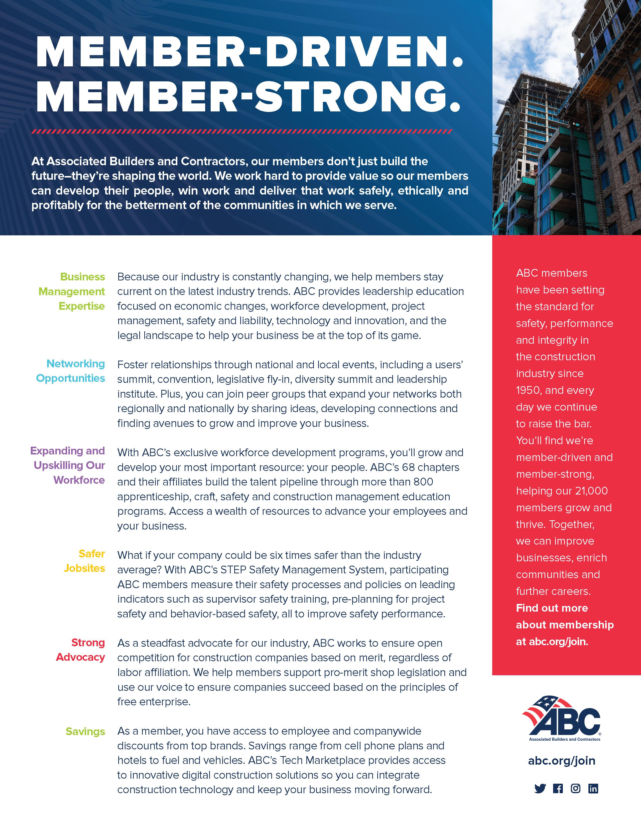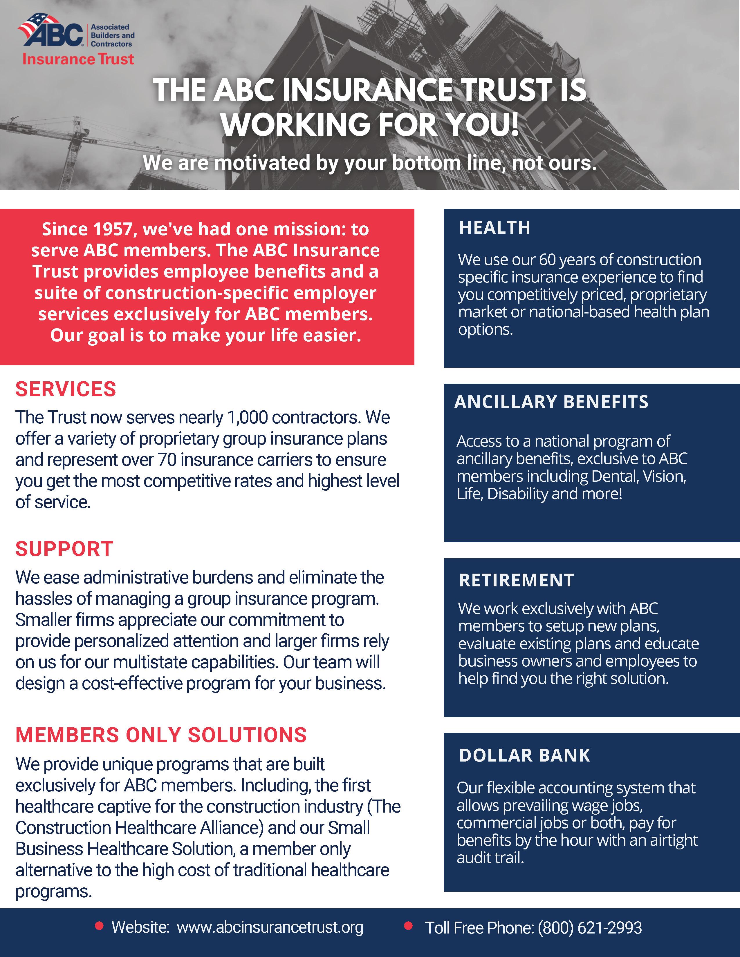 Exclusive opportunities and discounts for ABC Members only. ABC Trust Insurance, TECH Marketplace, Fuel Program, Business Discount Programs for Members and Employee Perks.