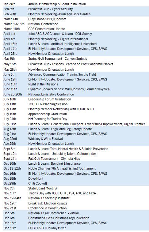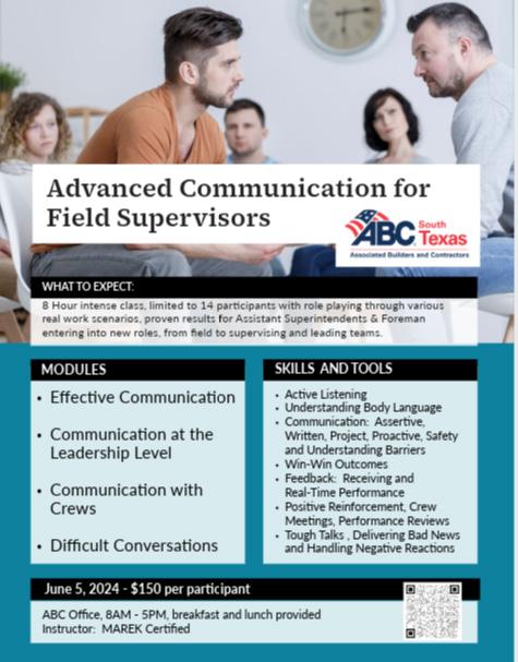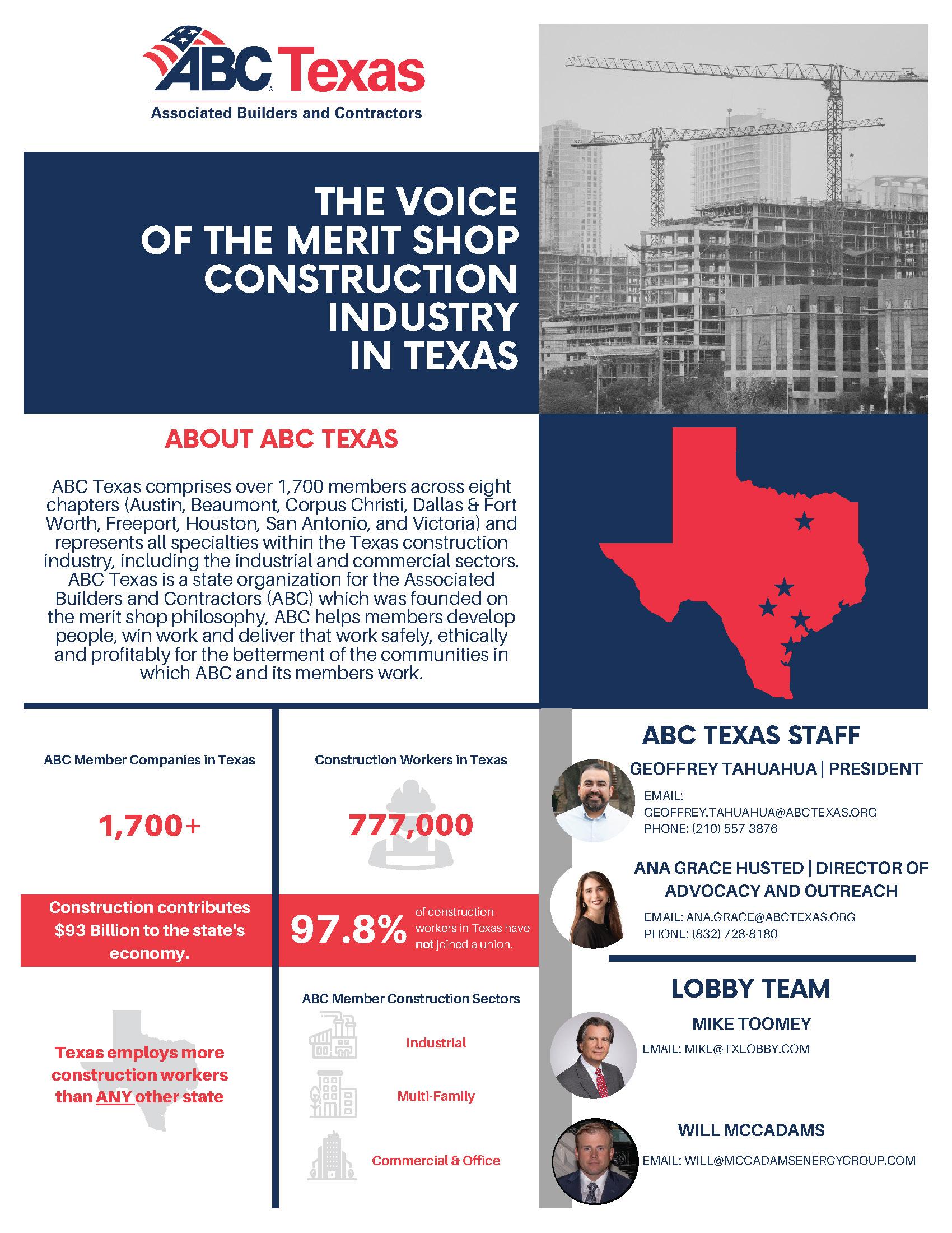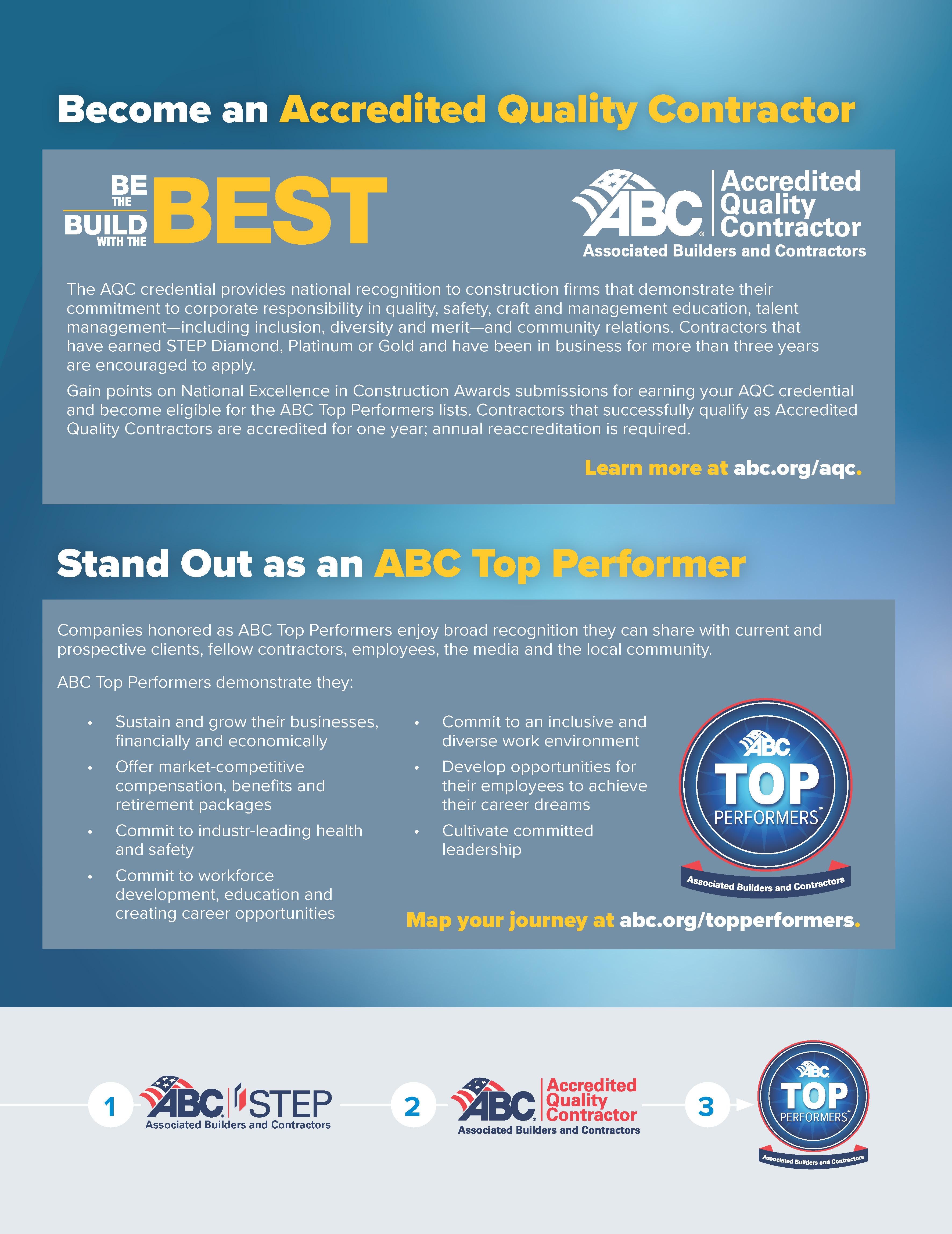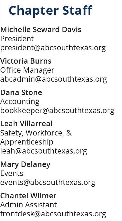 ABC-South Texas Chapter provides leadership and excellence in training, government representation and programs to ensure members a competitive advantage, add value to the industry, and promote a safe work environment in our community.