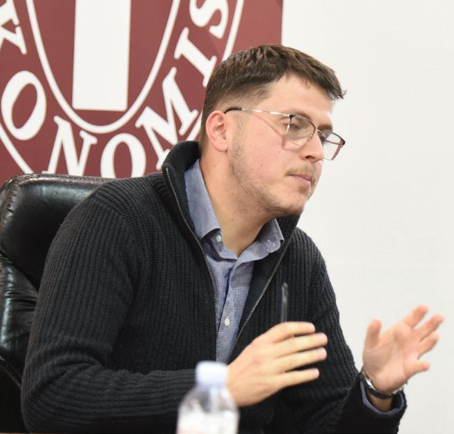 Msc. igli Tola, pedagog, në rolin e moderatorit të forumit, falënderoi të gjithë pjesëmarrësit, duke filluar nga studentët, të cilët, siç tha ai, janë faktori më i rëndësishëm i këtij fakulteti, pa të cilët ne nuk do ishim këtu sot, si dhe duke vijuar me pedagogët e ftuar, specifikisht nga Departamenti i Financës, Statistikës dhe informatikës së Zbatuar si dhe Kontabilitetit, për t’i dhënë vlerë të shtuar debatit të sotëm.