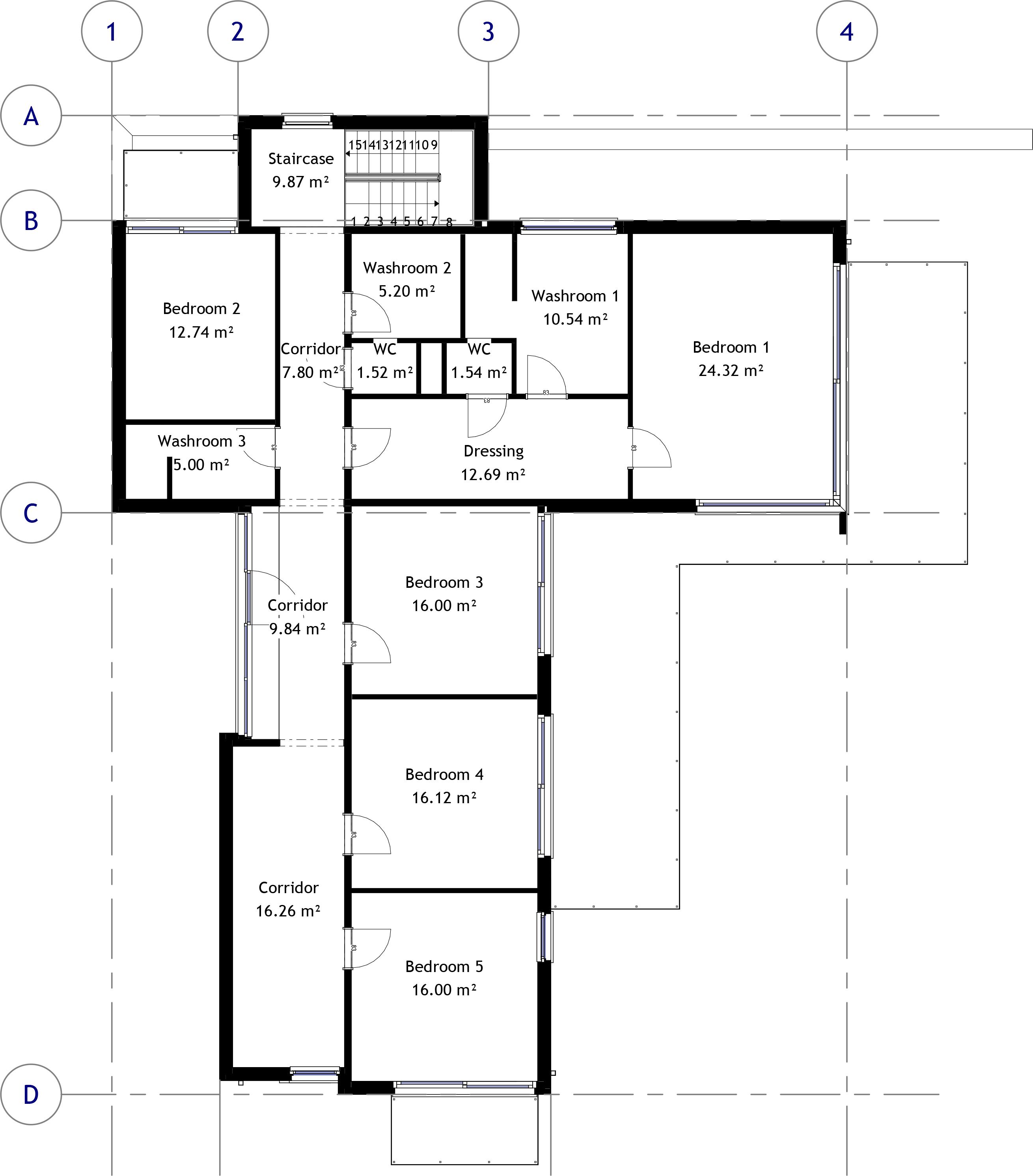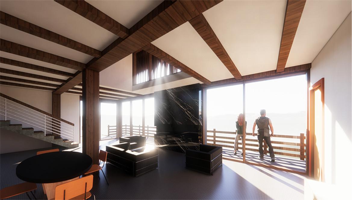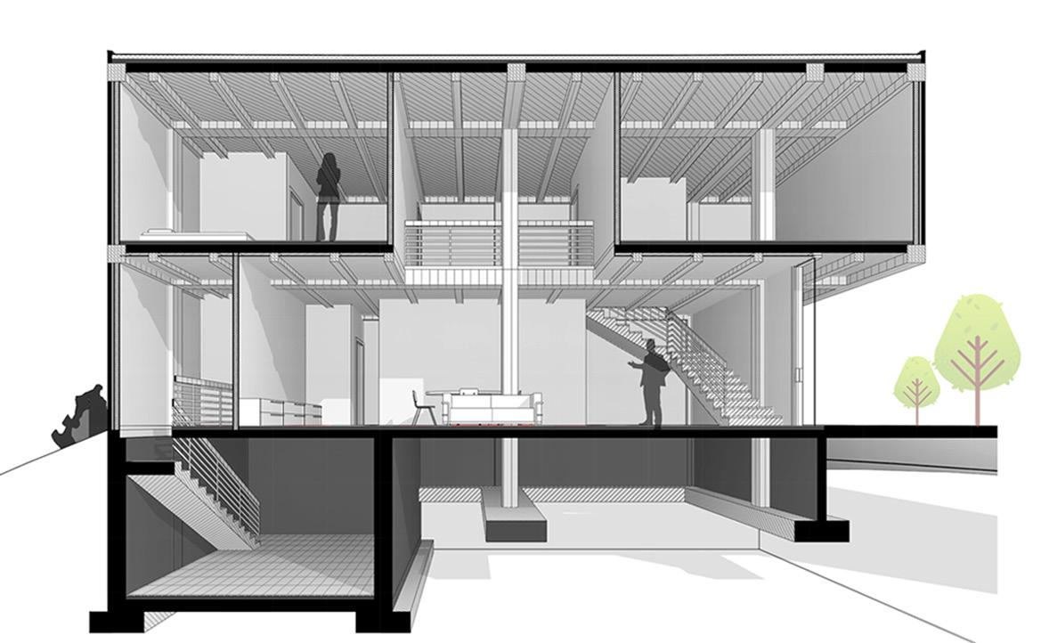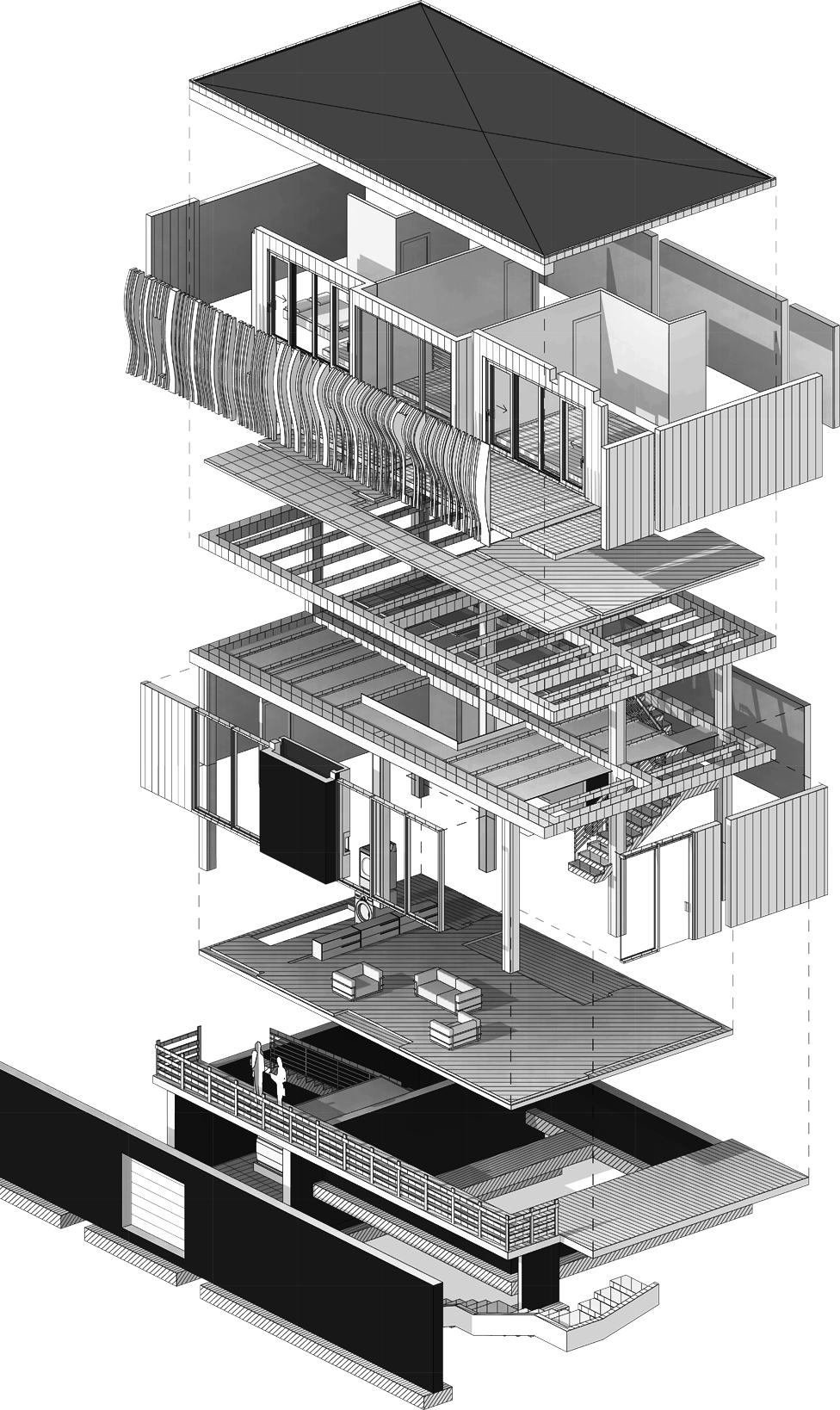 Revit skills & tools that were required to be used in this assignement are: two different exterior wall finishes, some visible structure, a curtain wall, interior walls, floors, roof, 3D furniture and plumbing fixture components, two diffrent window types, two different door types, topography and building pad, stairs.