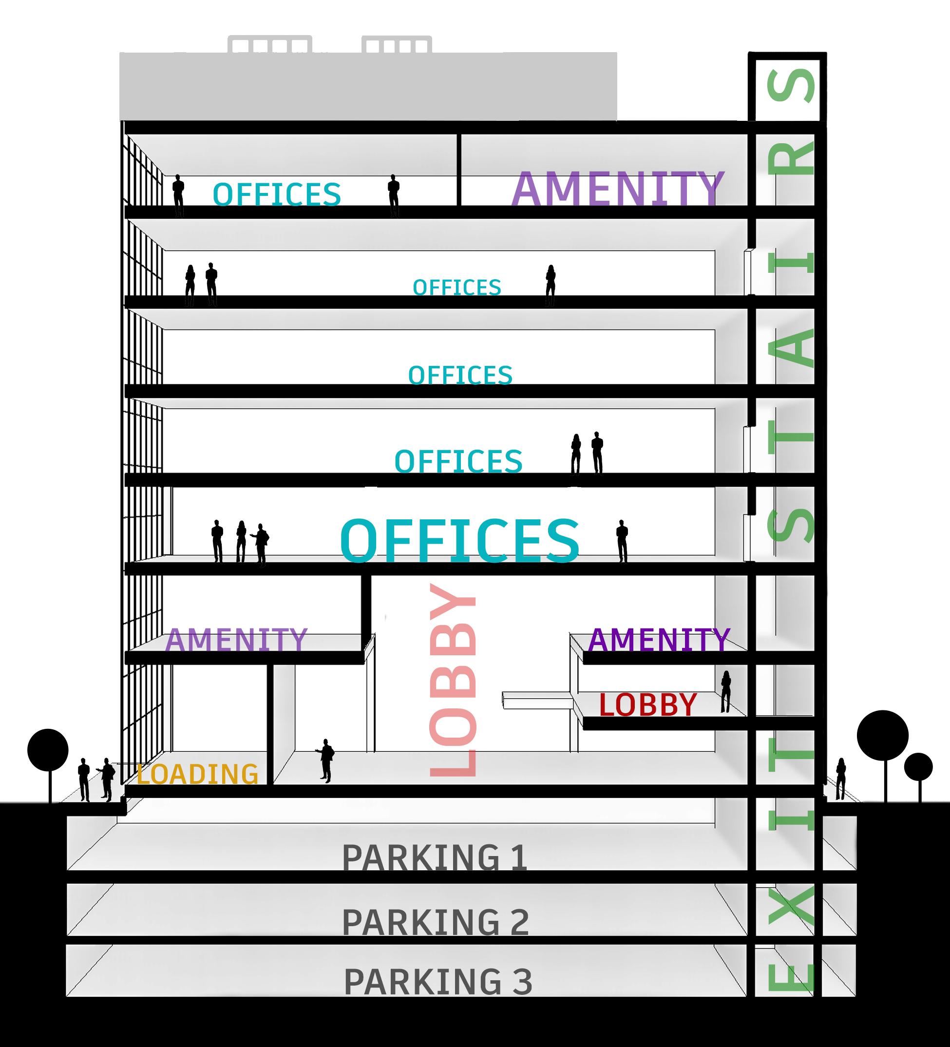 A complex Administration Office building design study specific to a Ryerson campus site. A seven storey building with an area of 1000 sqm.