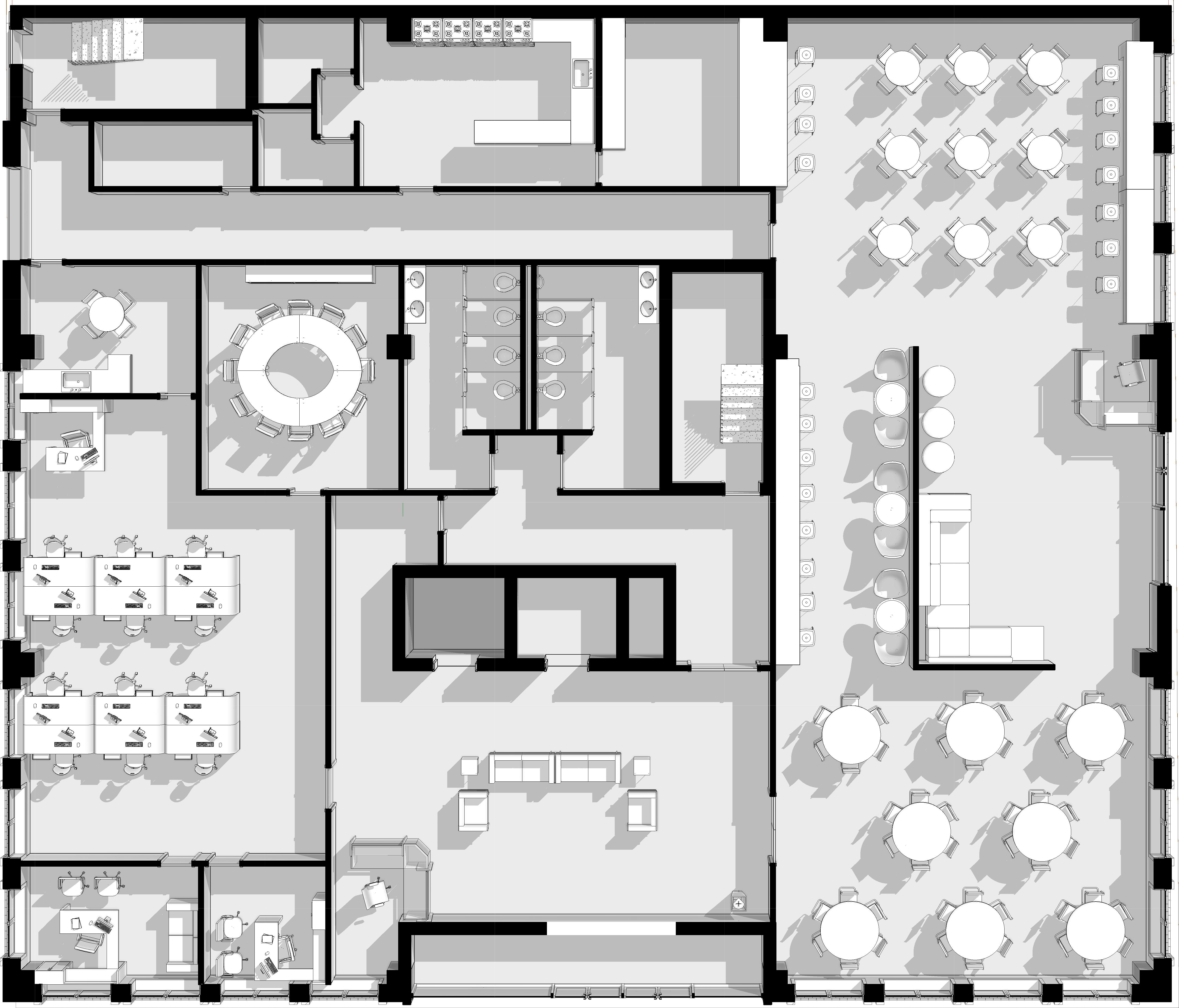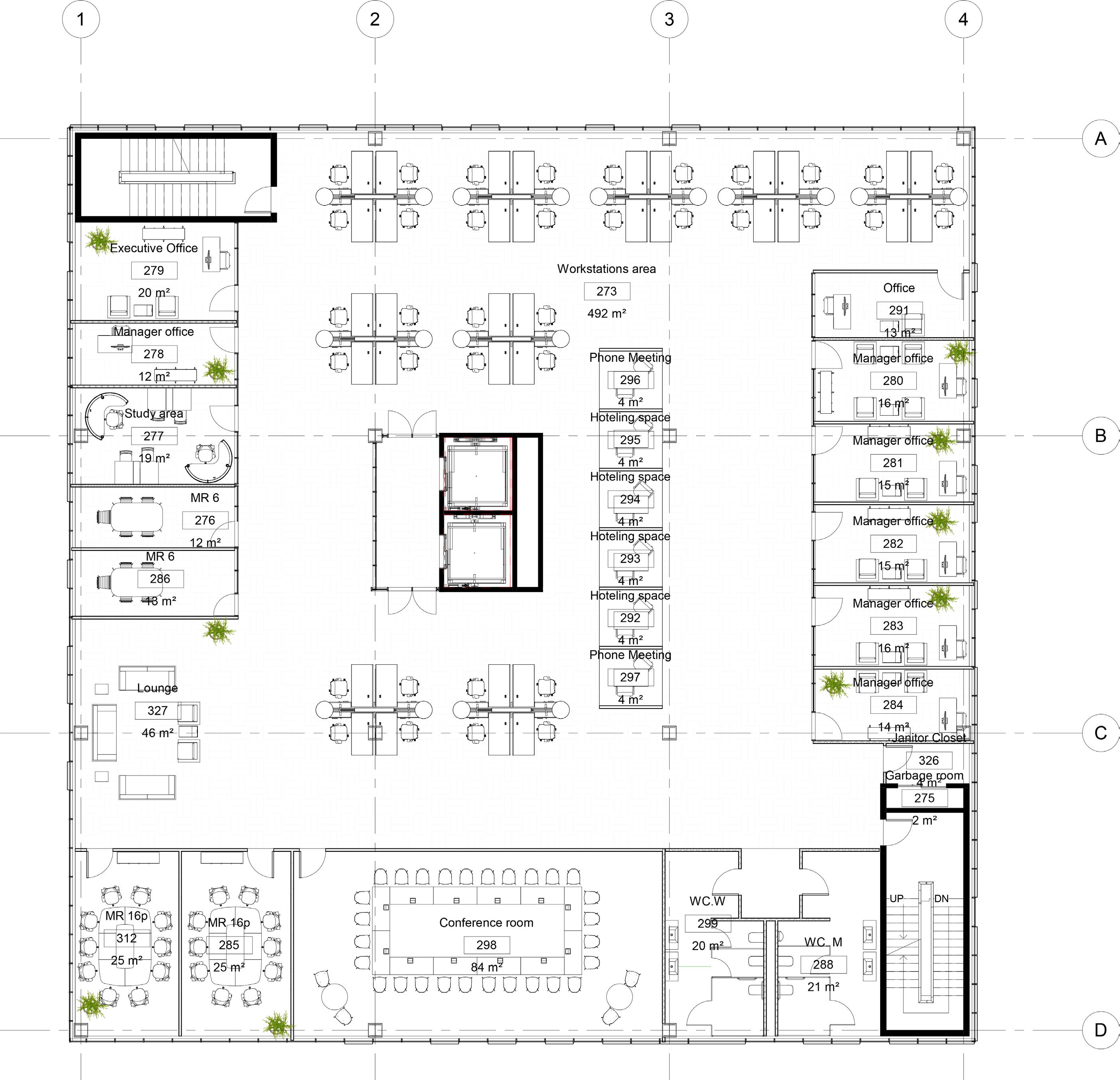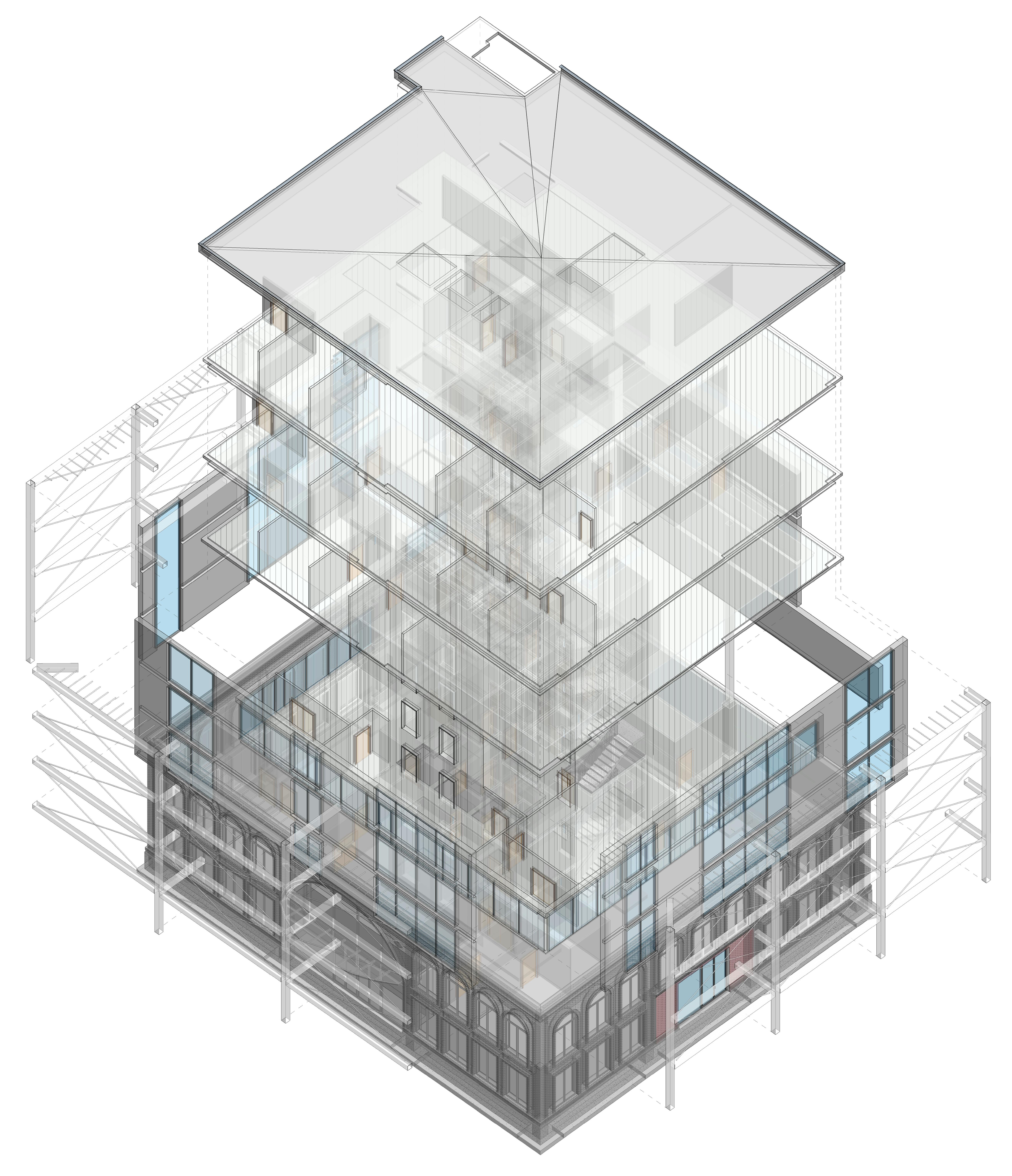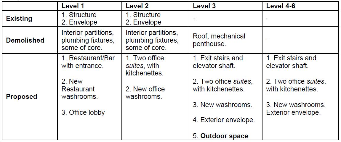 Renovation of a fictitious, existing low-rise office building in an urban setting, and turn it into a mid-rise building. Aspects of the building have been demolished as well as con structed new, with the goal of creating a mixed-used commercial and office building.