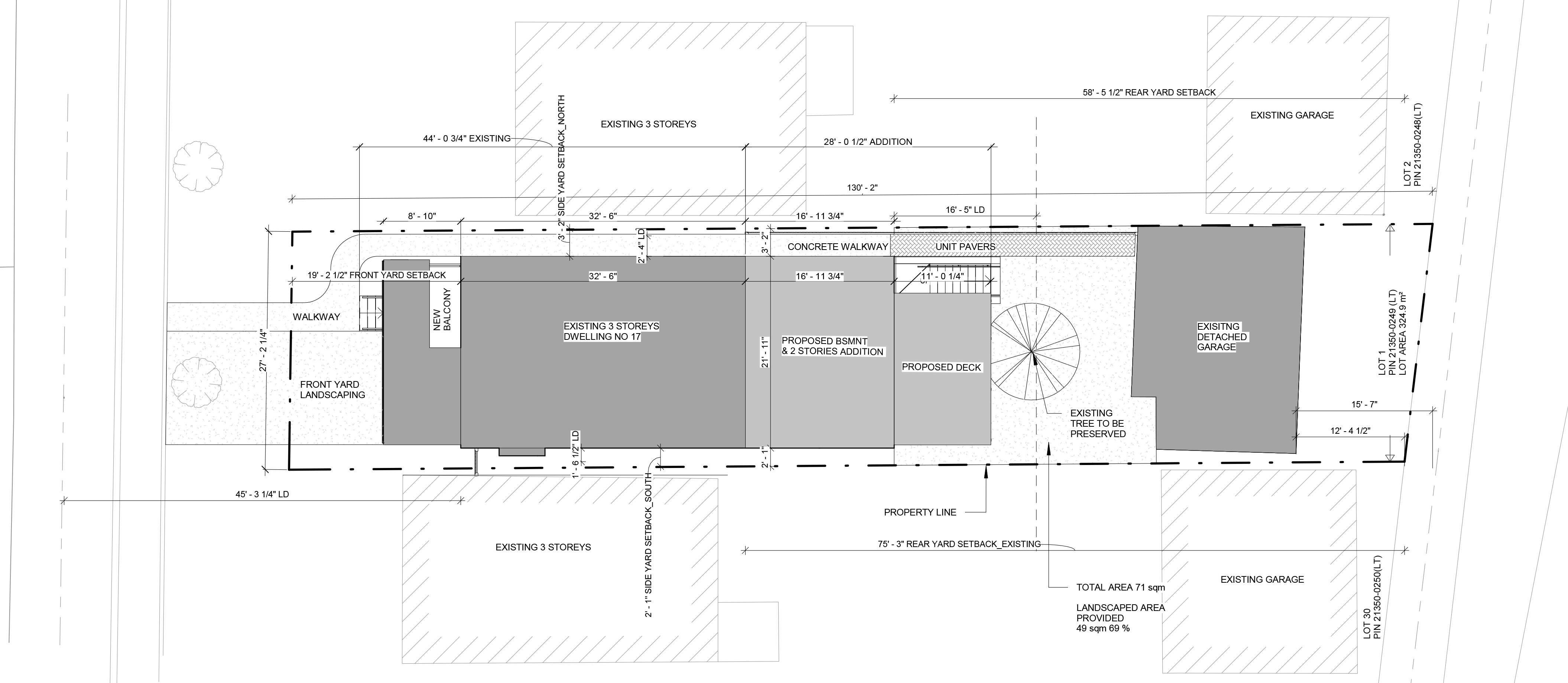 A renovation and addition to a Victorian house in downtown Toronto. 2 Storey + Attic and basement. The job consists in the demolition of all the interiors an enlarement of stairs, a con temporary layout for the main floor and an addition to the back of the house for the main and the floor above + a composite deck raised 1m above bachyard grade.