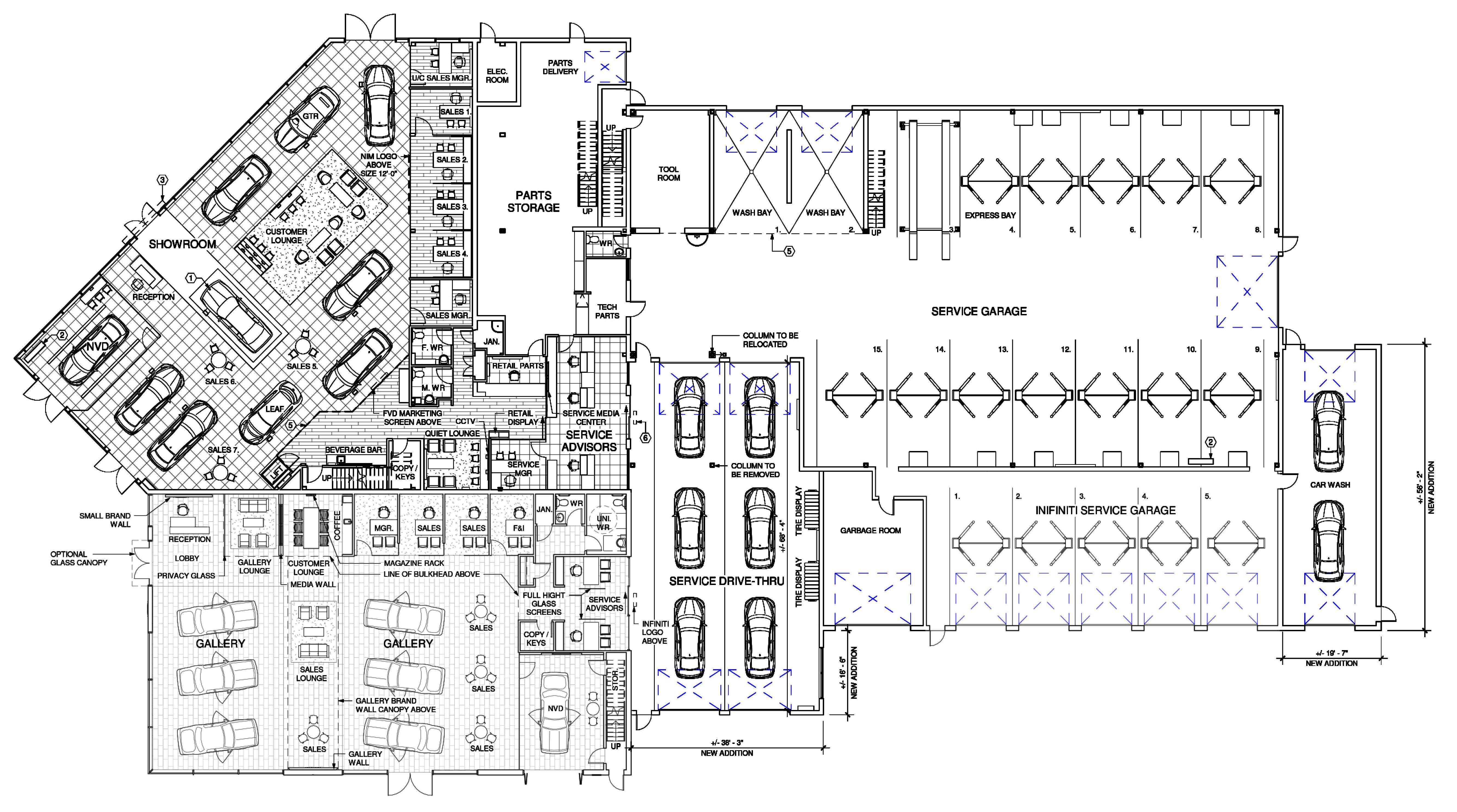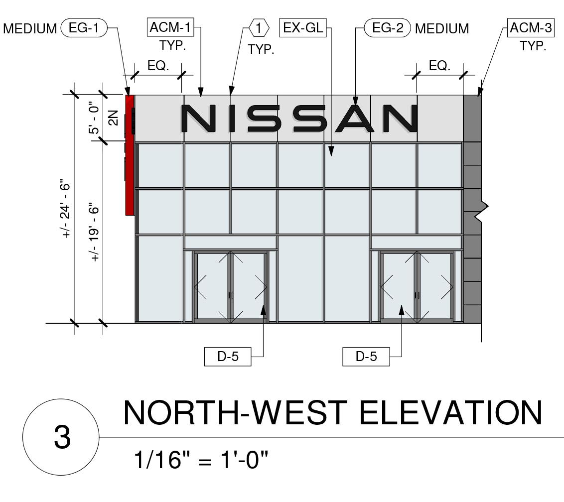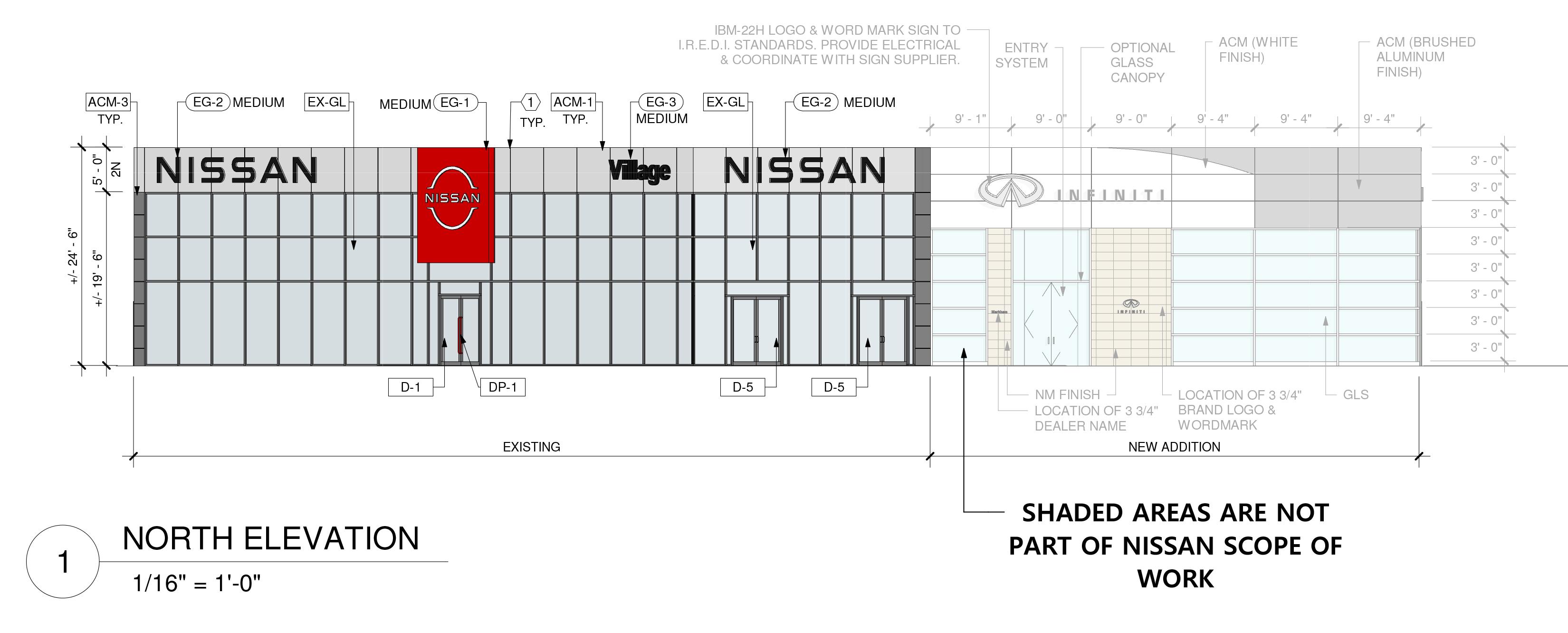 Renovation of the existing Nissan car dealership (new ceiling, new brand signs, new cur tain wall and ACM panels, interio alteration) + Addition of Infinit showroom along with service shop, service drive-through and a car wash on the South.