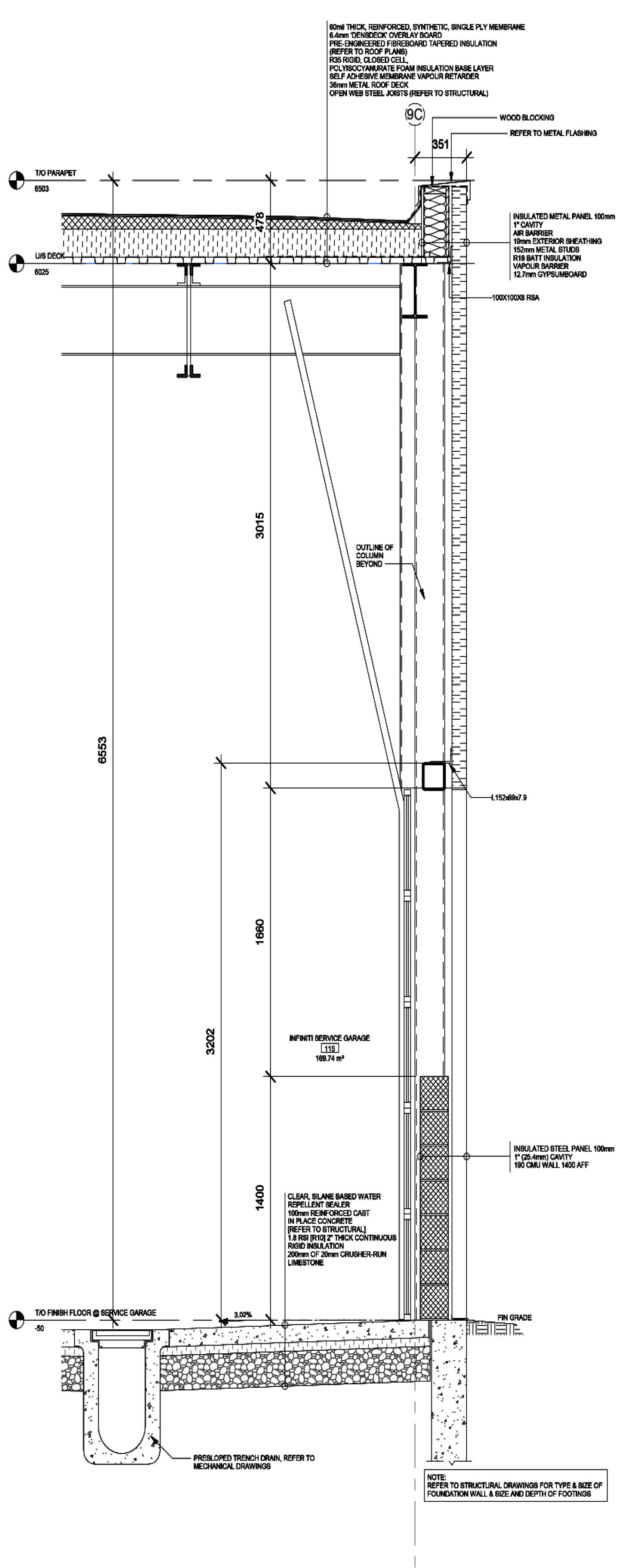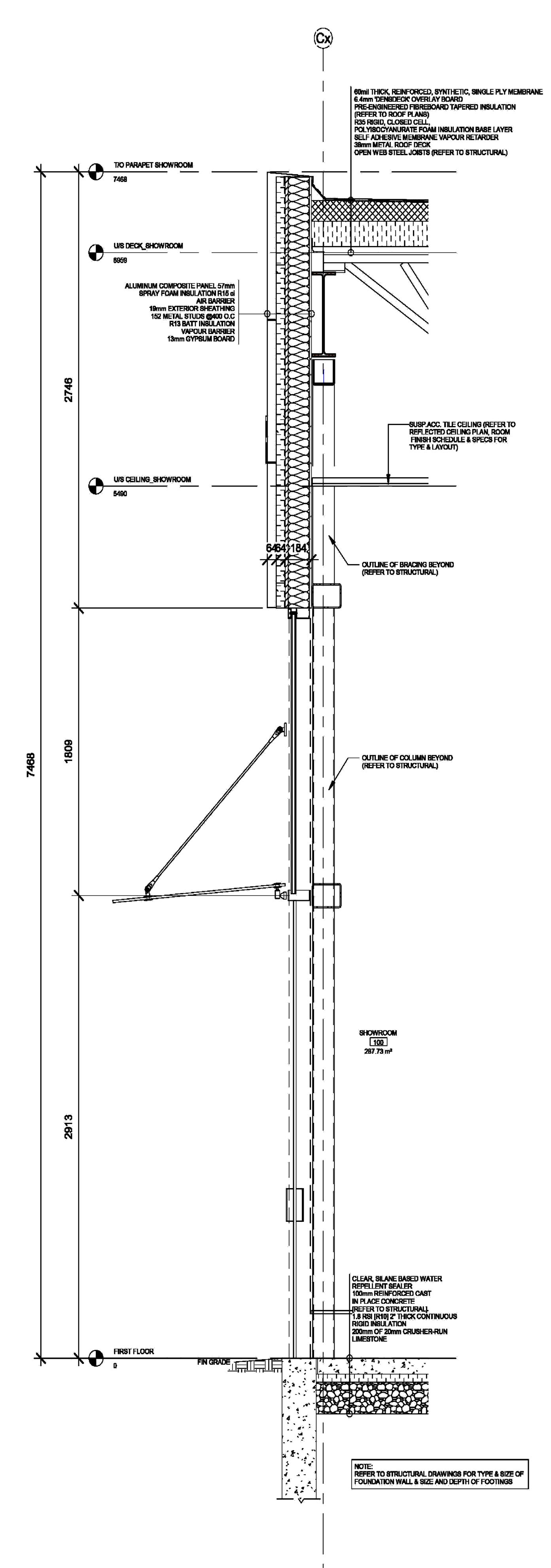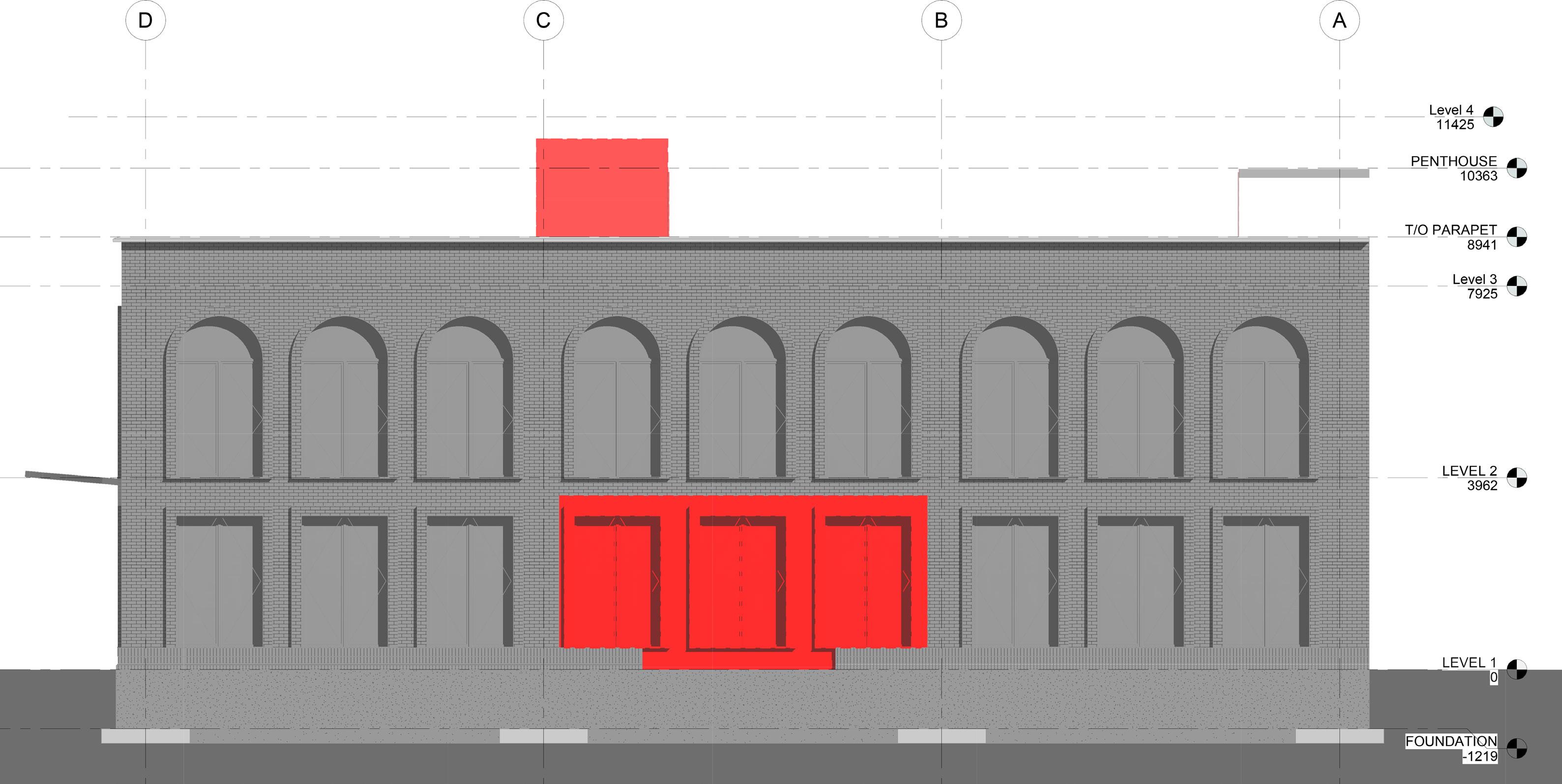 The existing building is a heritage property, meaning the existing facade not te be demolished, expect for its curtain wall entry and an allowance for a new eastern entrance.