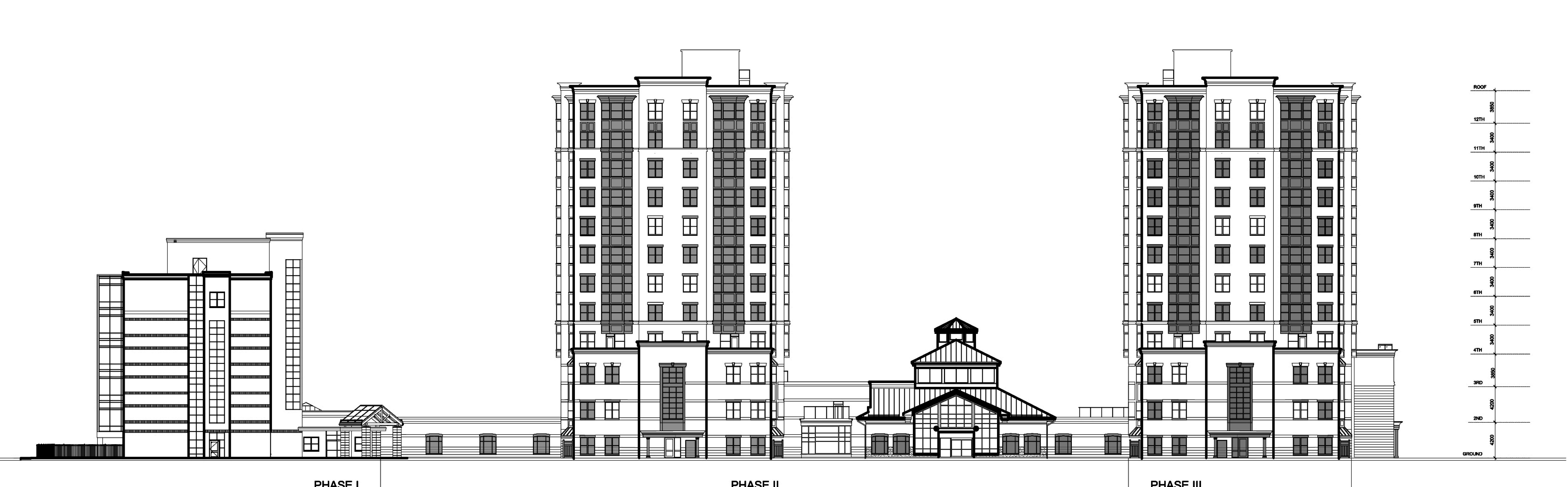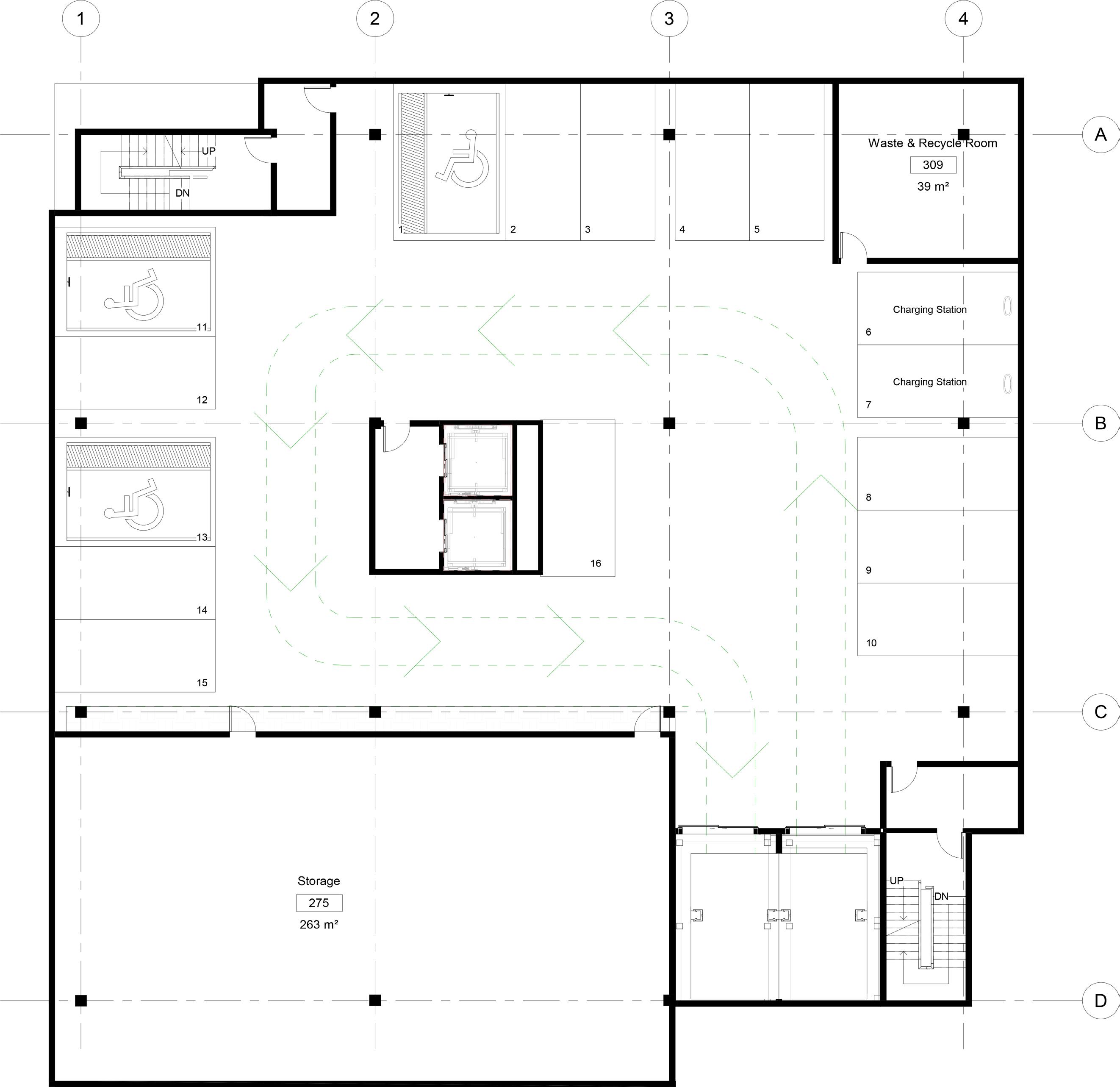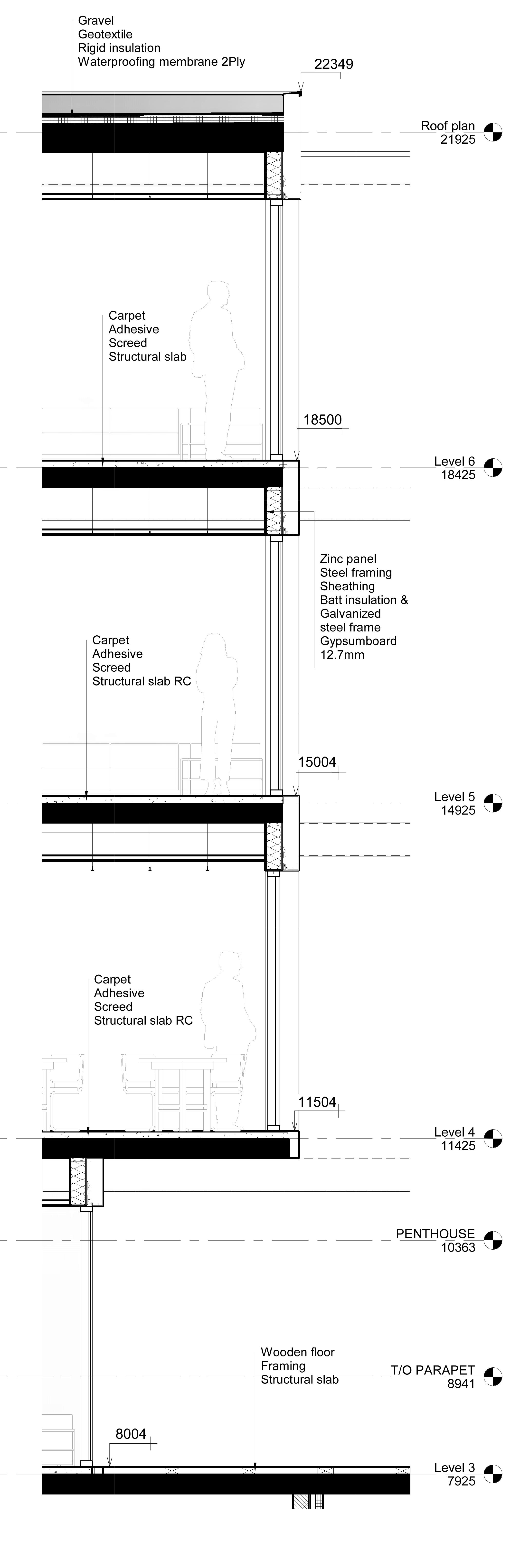 An additional elevator was included, required an expansion of the core shaft, and allowance for all necessary vertical elements, such as stairs and mechan ical shaft.