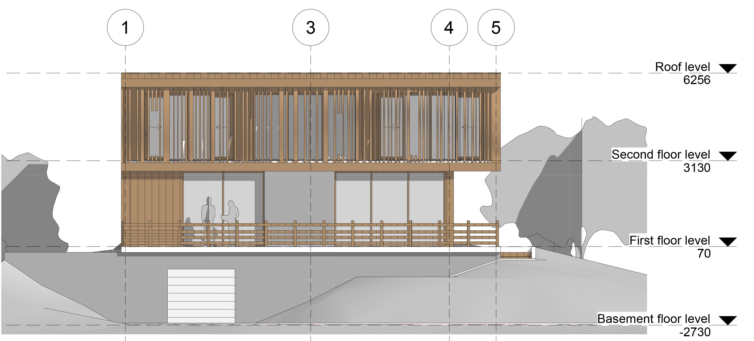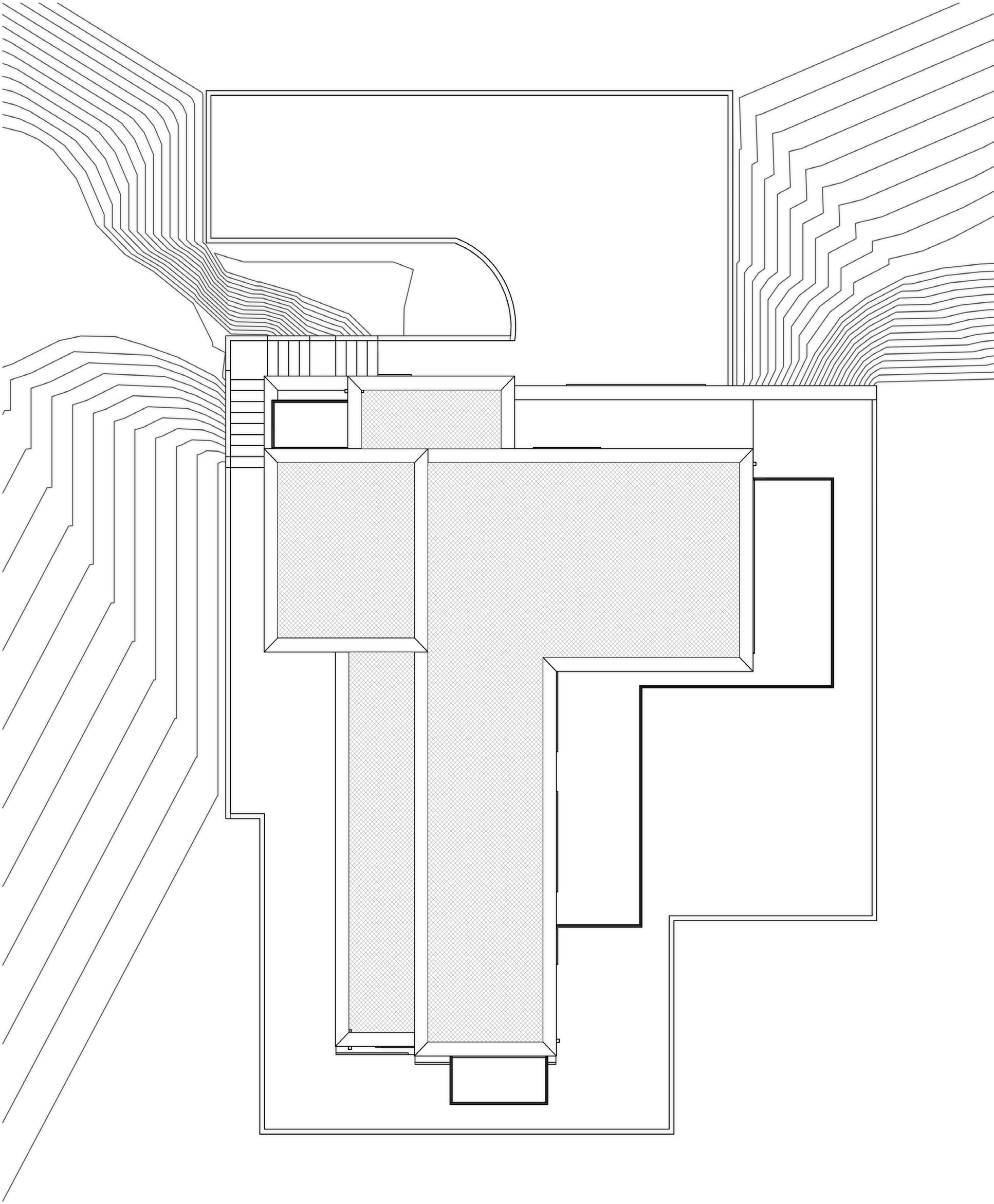 A contemporary house located in a hilly site with 200 sqm building area and 2 storey in building height.