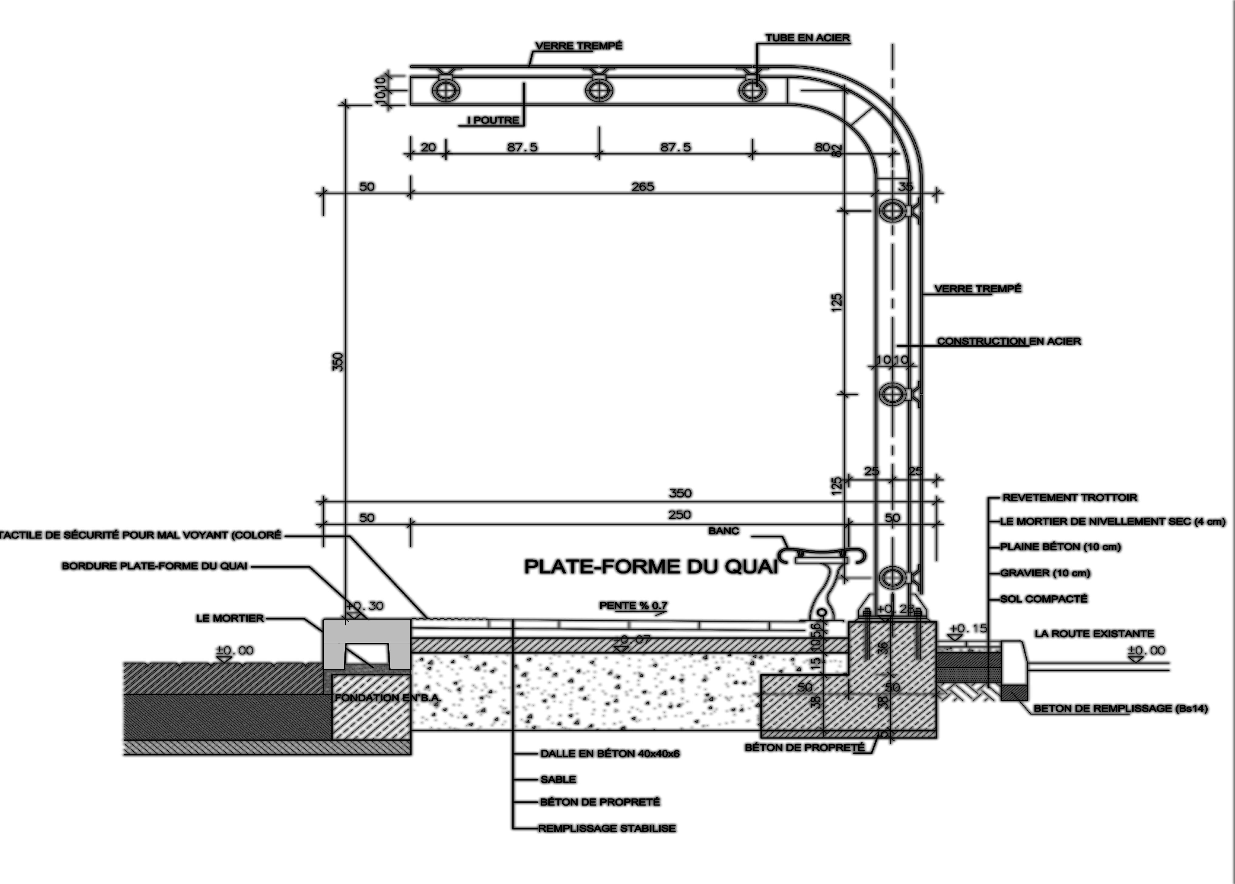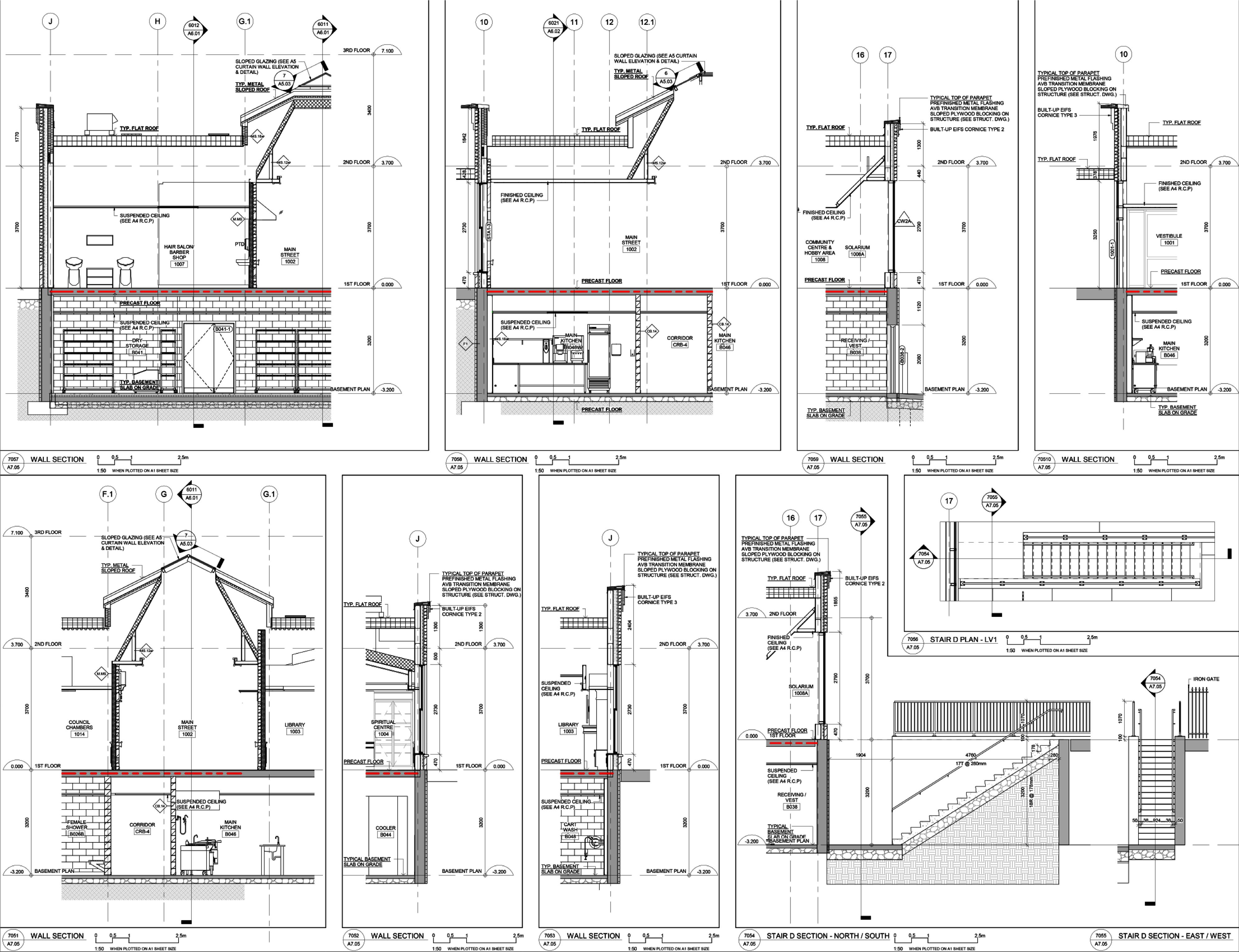 Preparation of construction documents for tram shelters, corridor buildings, grading plans and coordination with consultants.