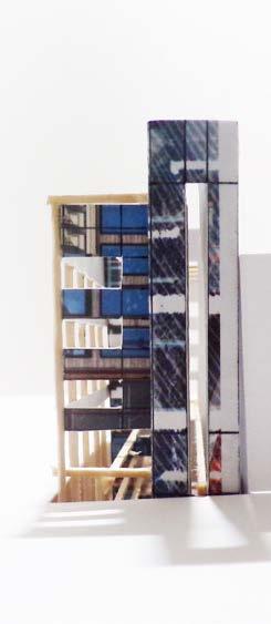 After conducting collage studies with site information and photography, various formal languages emerged. The grid framing system, iconic to NYC facades, guided the translation of these languages into three-dimensional paper model explorations.