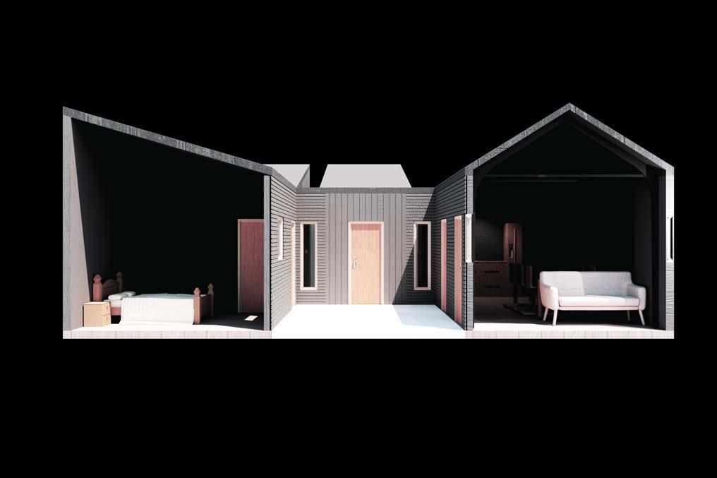 The project is a design proposal for a modular home assembly that takes advantage of wood as a building material. During the initial stages of the design process, the eastern redcedar emerged as an excellent building material due to its durability and strength. The design process involved rigorous hands-on testing of ideas through study models to propose a system ideal for construction and architectural experience. Models exploring cross-stacking, wood fasteners, and tongue and groove joints provided the opportunity to explore methods of construction and assembly for the modular house. These study models also allowed for the exploration of clay and lime as vapor barriers.