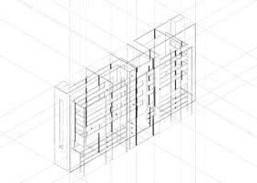 This multistory building in Lower East Side, Manhattan seamlessly integrates into the dense urban fabric of New York City. Designed as a workshopbased trade school, its interactive programmatic spaces utilize varying heights and open conditions. At ground level, a double-height space houses the main entrance and an exchange/ exhibition area. Workshop spaces above visually interact with each other and the exchange space, maximizing natural light penetration. The building optimizes its narrow site by horizontally distributing programs and utilizing a subtractive approach across multiple levels.