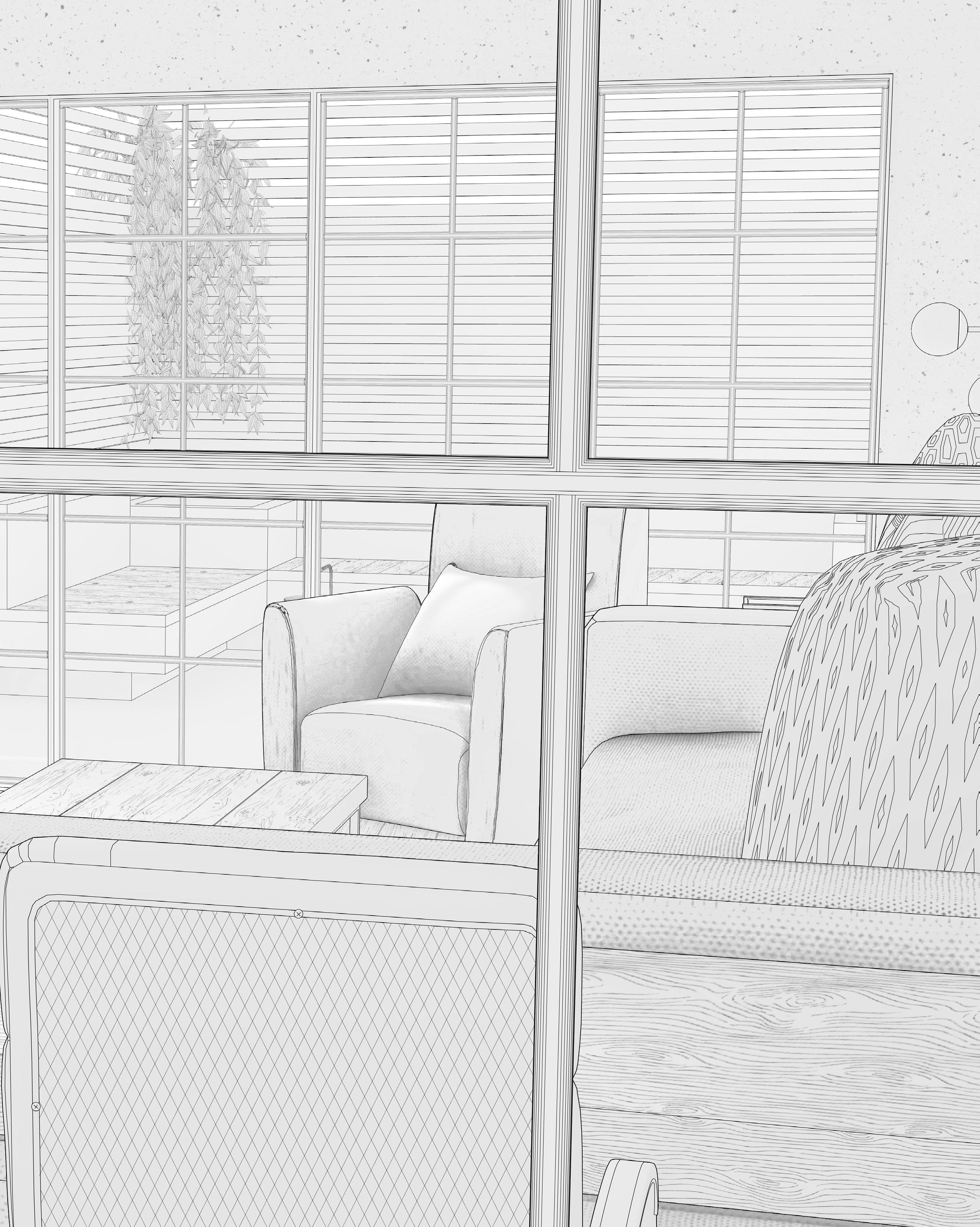 The 'Dewaniya' is a social gathering space and a key aspect of traditional Gulf Arab culture. It is a space where guests are received to socialize, play cards, debate or conduct business, however, it can also be used as a gathering space for the family. Typically, seating is often on the floor with cushions arranged in a square. For that reason we incorporated an outdoor seating bench square akin to a 'Dewaniya' sitdown. A Dewaniya is also typically, a room or tent, however, this project extends the idea of the 'Dewaniya' to an entire floor. As a Saudi-Arabian, most of memories and great times with my family and friends were based in my grandmother's 'Dewaniya'.