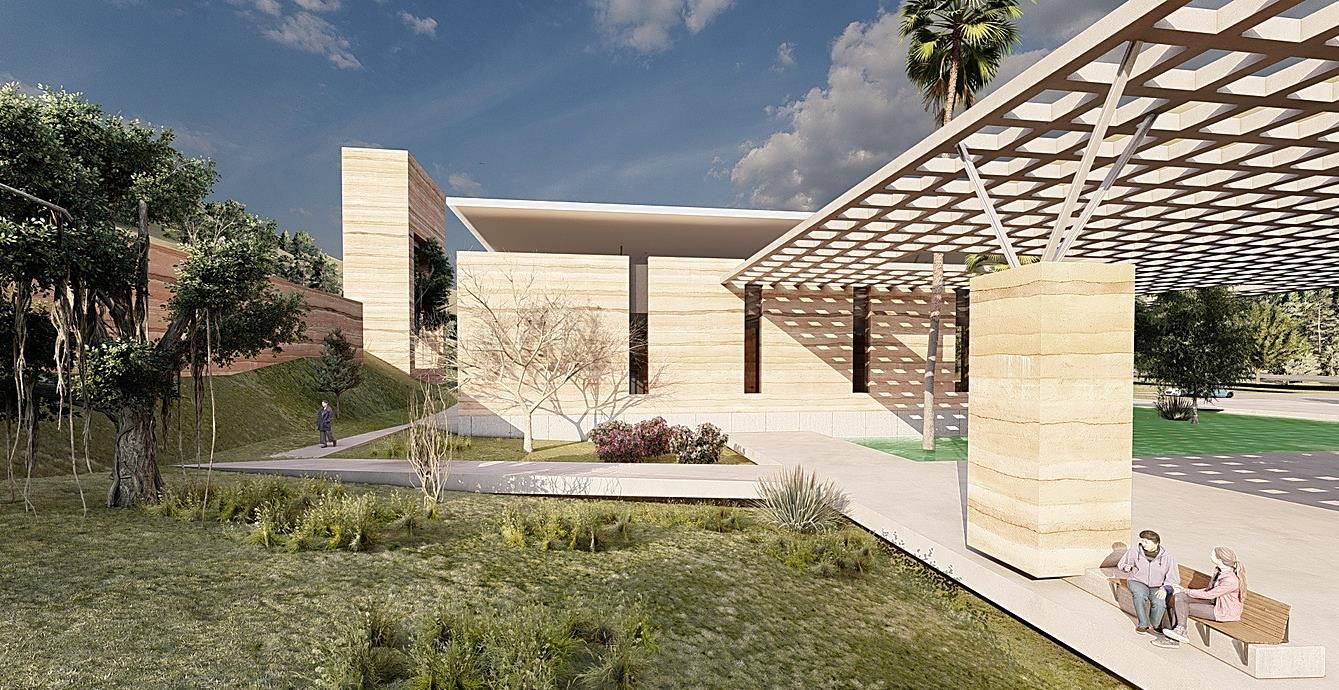 The building material will be sourced directly from the site's soil, creating a tactile connection to the natural elements of the location. This fosters a profound sense of belonging to both nature and the earth