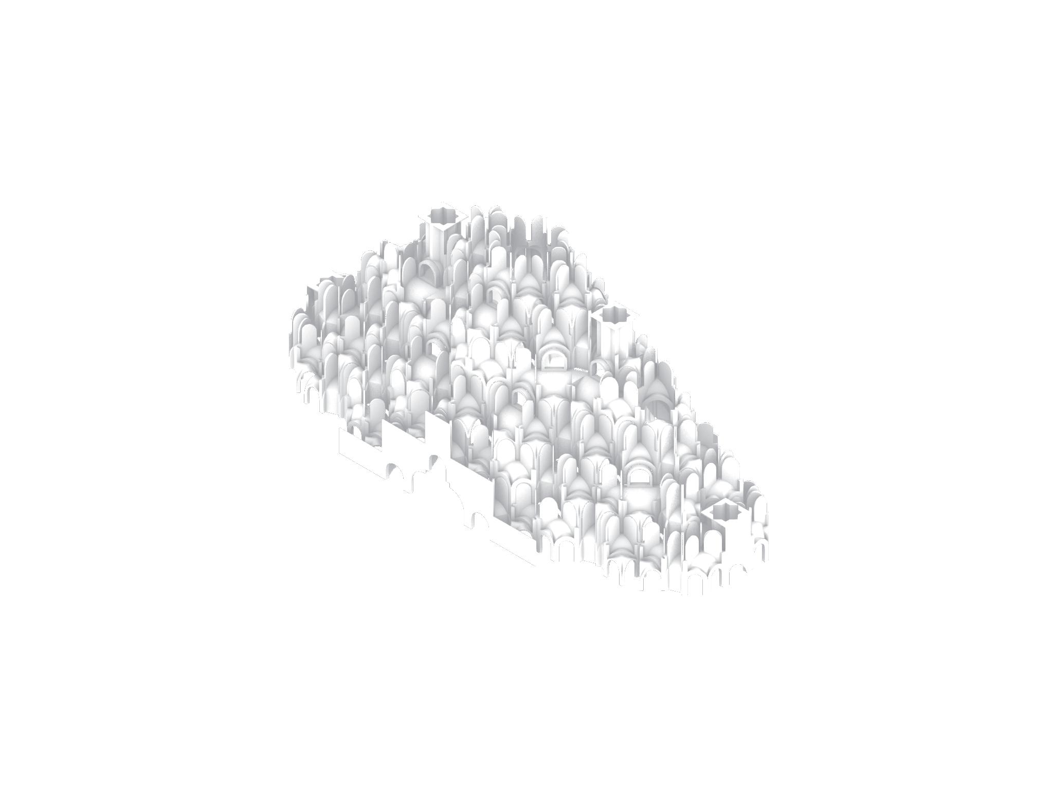 The inspiration behind the design of this project is derived from the form of the ornamented vaulting structures in Islamic architecture called Mugarnahs. The structures are articulated in modular geometric shapes that efficiently envelop the built environment and can simply be adjusted for the future development of the city. The structure is created using recycled materials such as mud sludge and construction remains. Each shape is designed to adapt to the hot climate by incorporating scattered openings, allowing optimal ventilation and measured sun exposure.