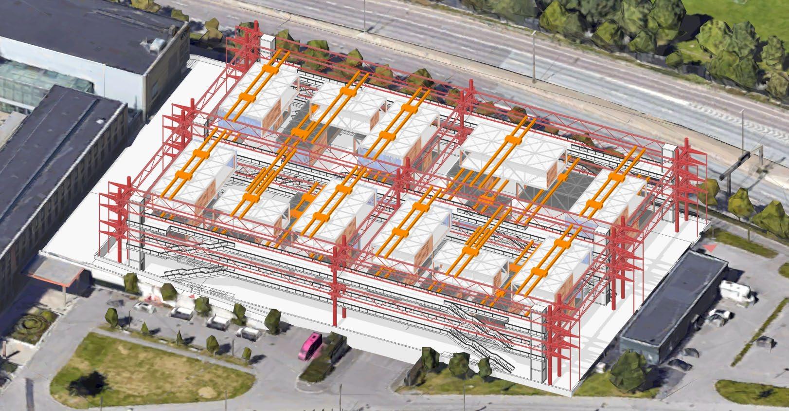 The detailed structural diagram showcases the innovative construction approach, emphasizing modular, adaptable frameworks that integrate digital infrastructure and physical space. This method ensures scalability and flexibility, essential for responding effectively to evolving urban demands and technological advances.