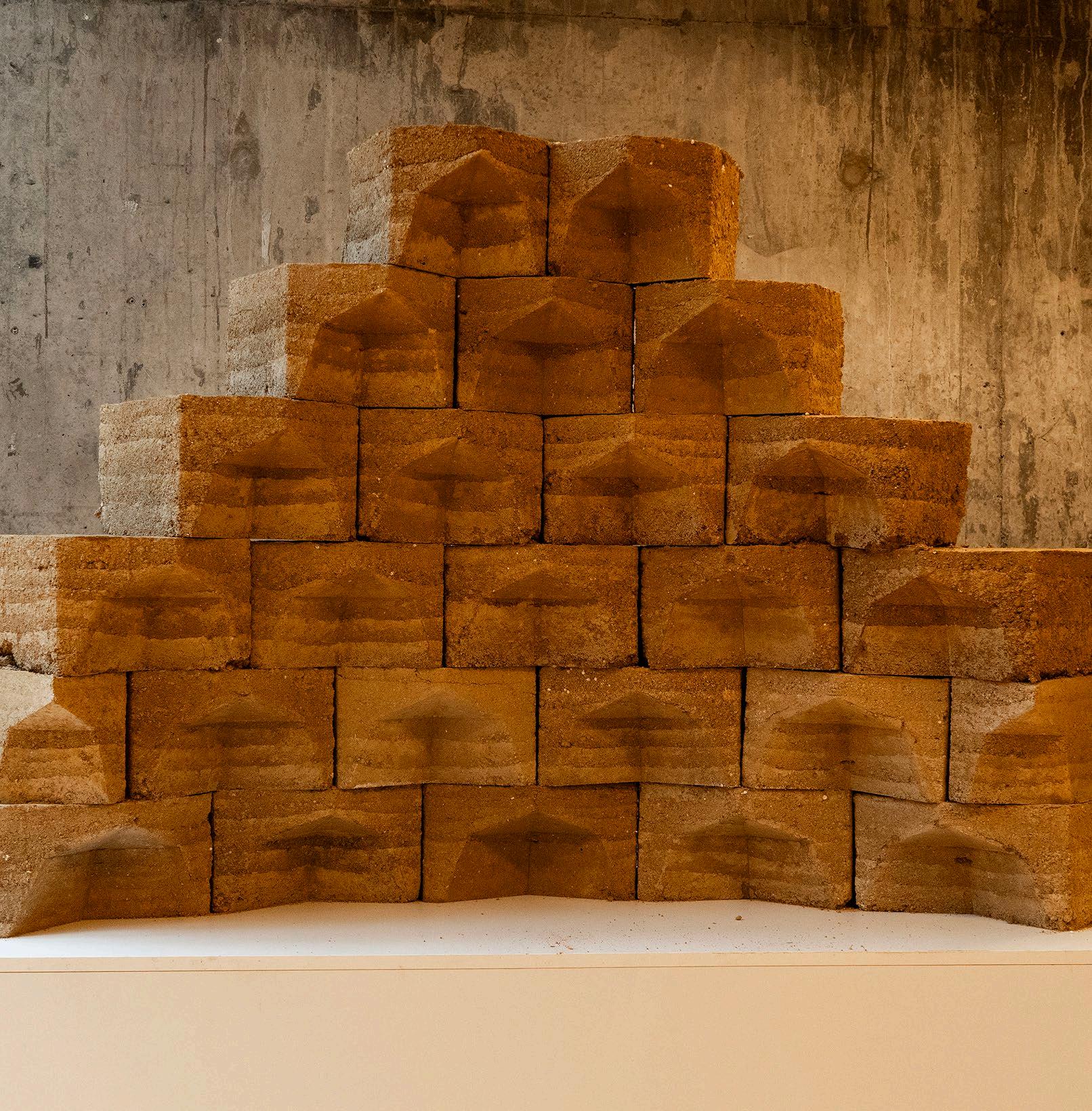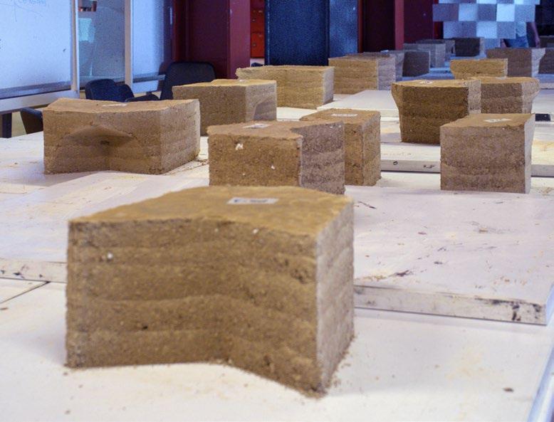 Successfully fabricated rammed-earth blocks, showcasing the material’s texture, integrity, and consistency resulting from robotic fabrication methods. These prototypes exemplify the practical viability and aesthetic potential of computationally designed earth-based construction techniques.