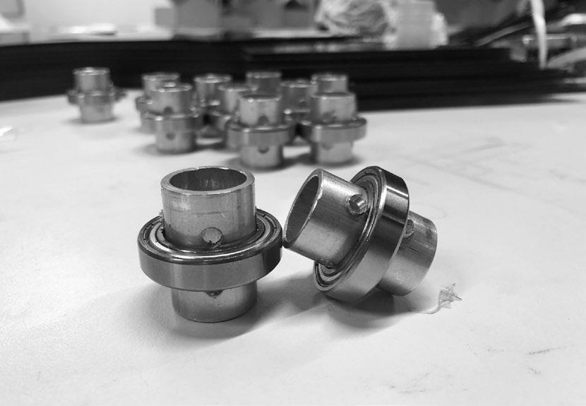 For the rotation of the geometry, our goal was to have the first Group of Shapes rotate in the opposite direction to the 2nd group of shapes, we made the first group rotate freely on a ball-bearings then connect all of them with small Acrylic studs that at the end connect to a metal plate, and then use that plate to rotate the whole “A” Group.
