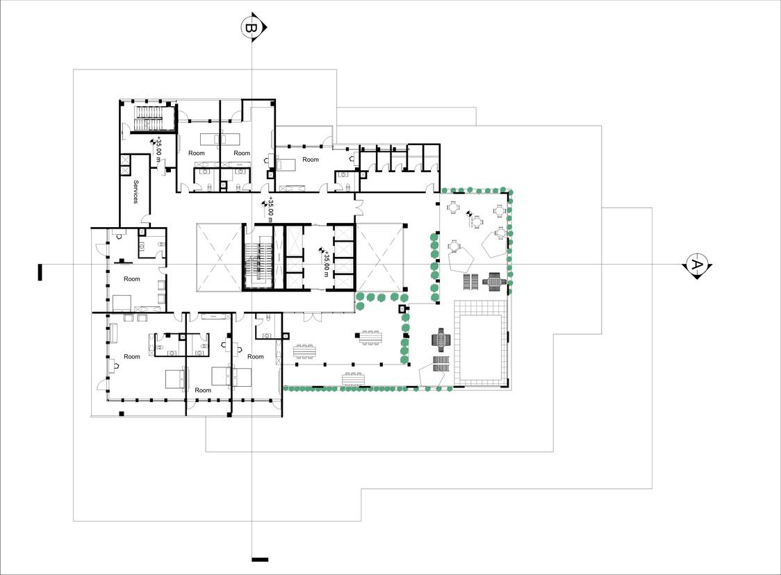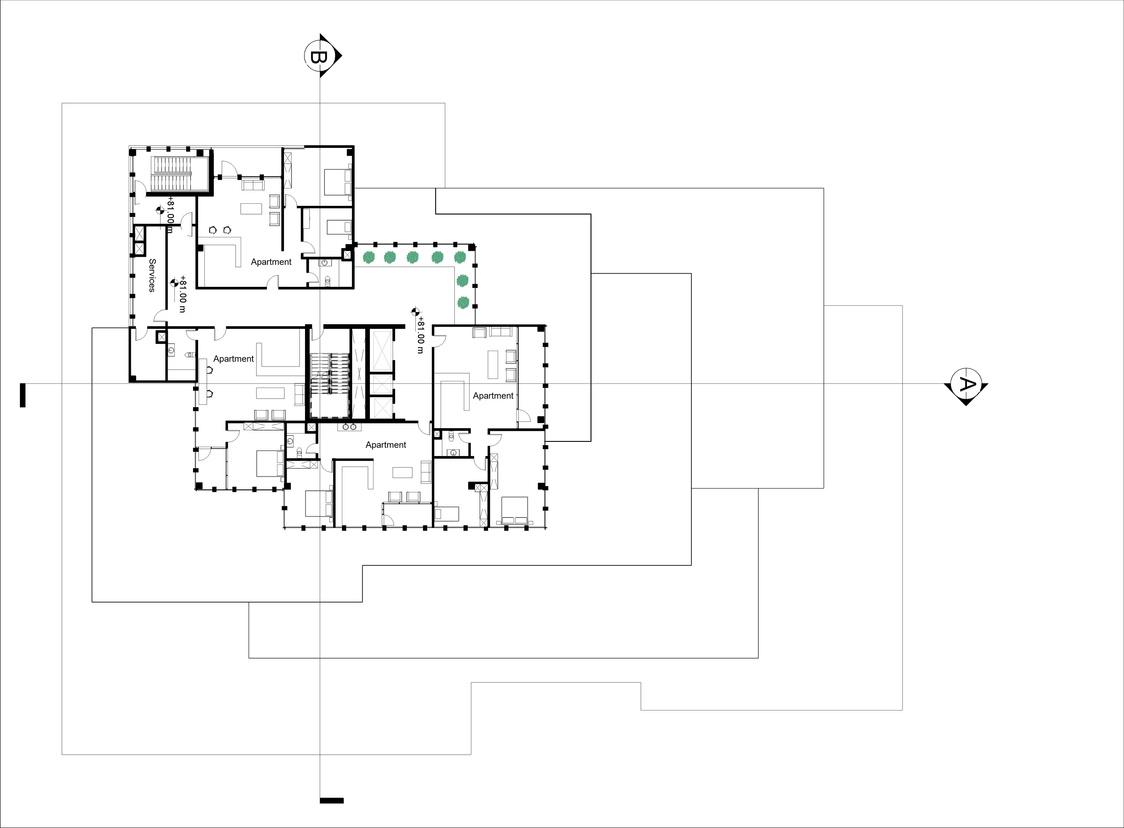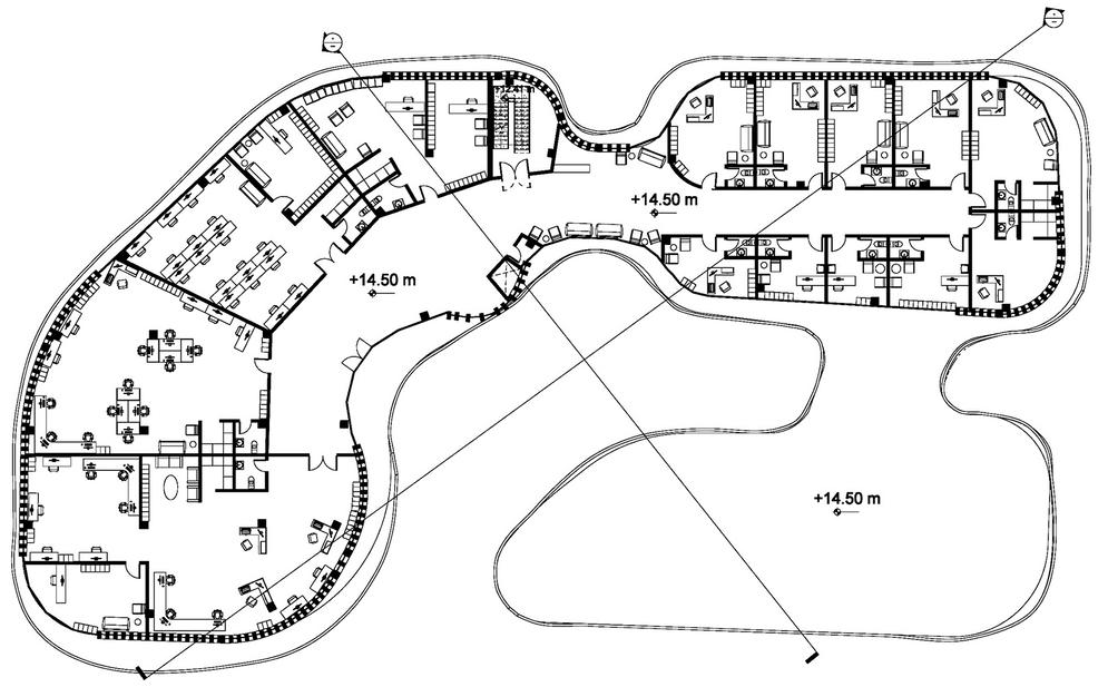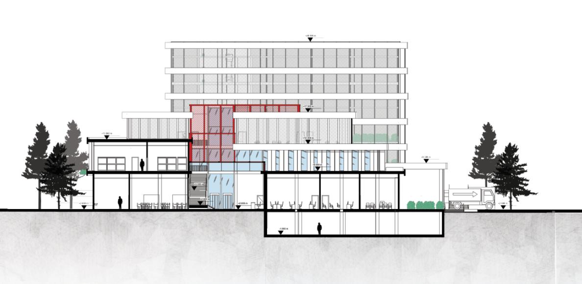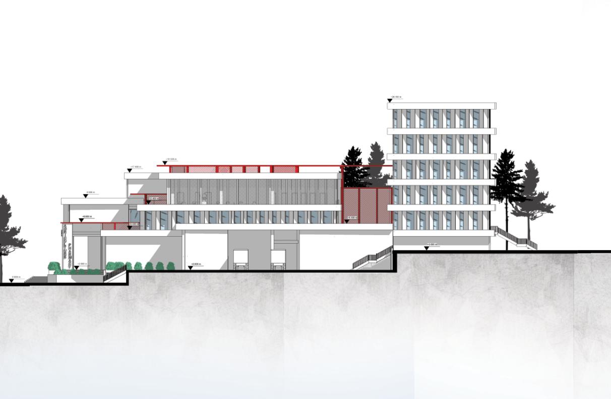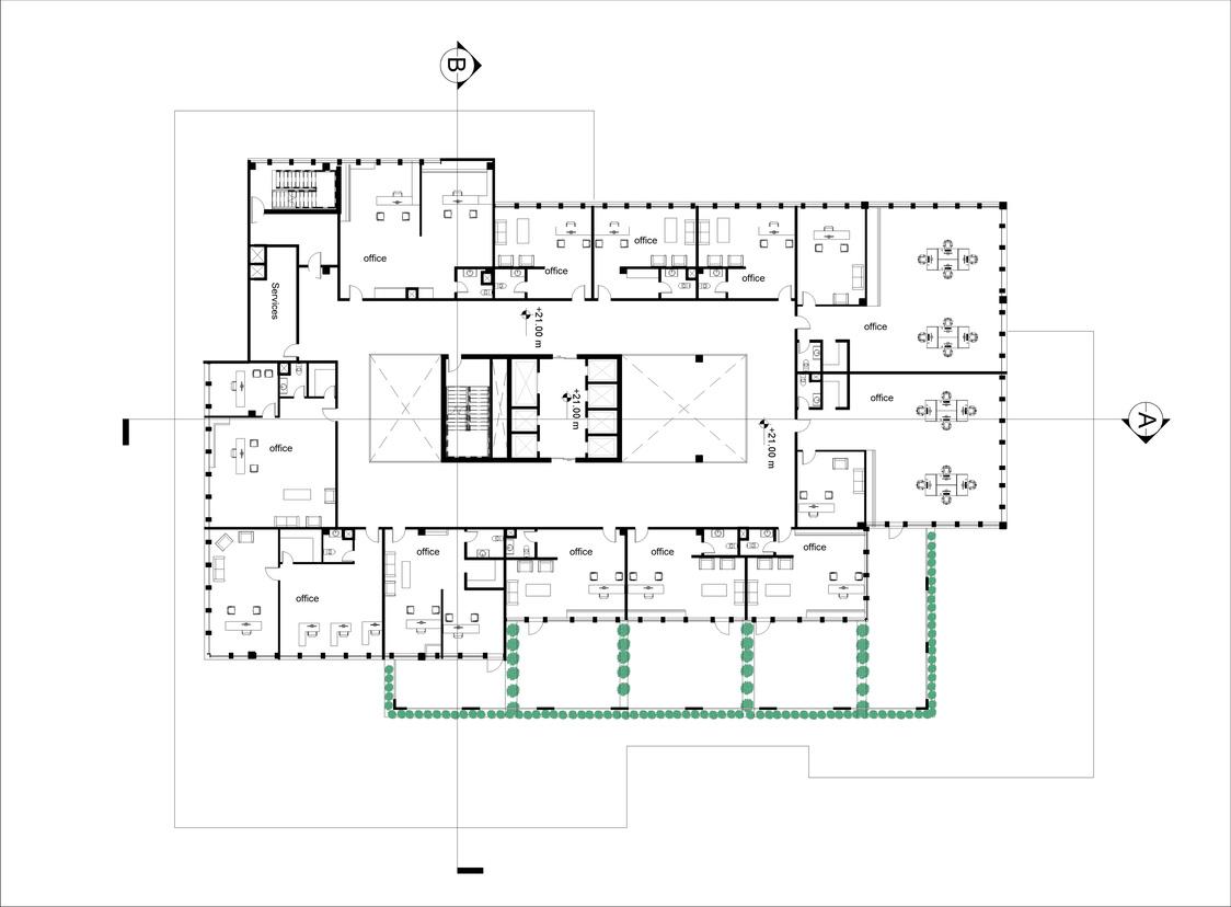 THE BUILDING WAS PLACED IN AN AREA WITH FEWER TREES; TO REDUCE THE NUMBER OF FELLED TREES