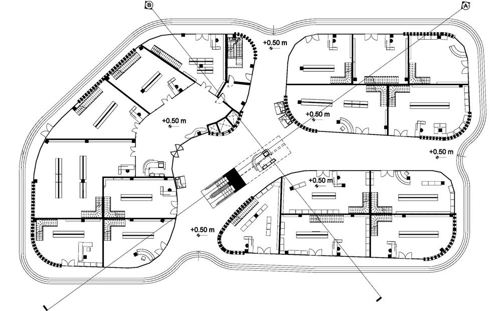 THE CURVED BLOCKS ARE IN HARMONY WITH THE SITE.