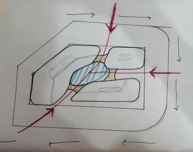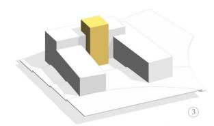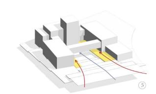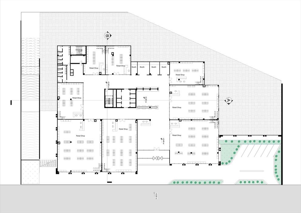 THE BLOCKS WERE FORMED DEPENDING ON THE PEDESTRIAN MOVEMENT AND THE ENTRANCES AND EXITS OF THE BUILDING.