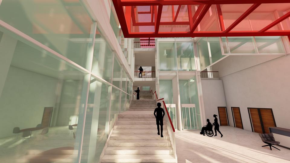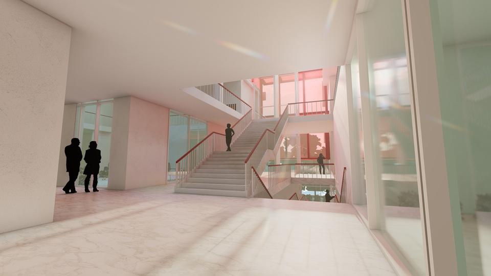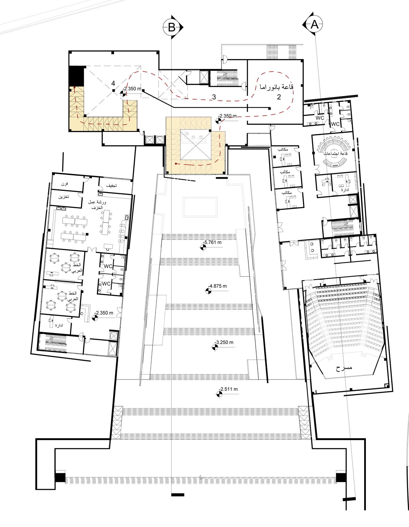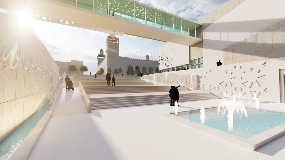 The project works to attract people to the museum, through the stairs from the courtyards of the mosque down to the center of the project.