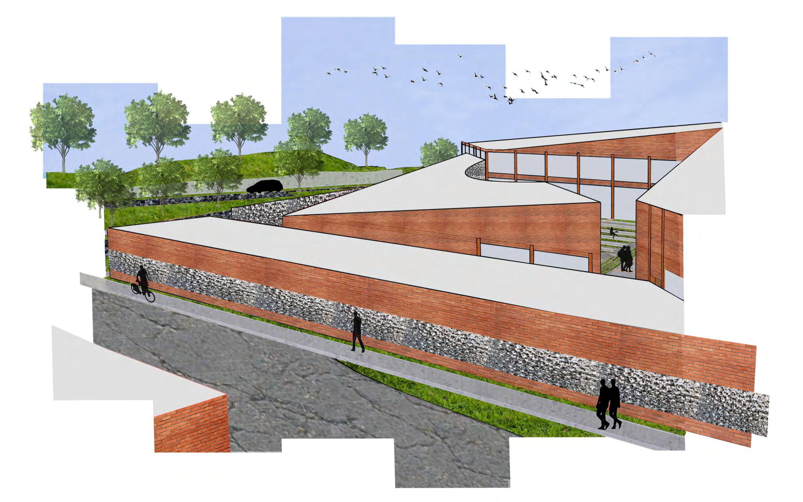 The Cayce Arts Center works to serve as a guide and gathering space for locals and visitors alike in historic Cayce, SC, right outside of downtown Columbia. This is achieved through the use of the north south axis, which creates flexible spaces. All windows and natural lighting for the building(s) comes from this central space, as inspired by the Wadden Sea Centre, which uses a controled natural light to help guide guests through its galleries.This is accomplished all while honoring the town’s rich masonry history and relationship to the Congaree River, while serving as a cornerstone for the revitalized River Arts Disctrict.