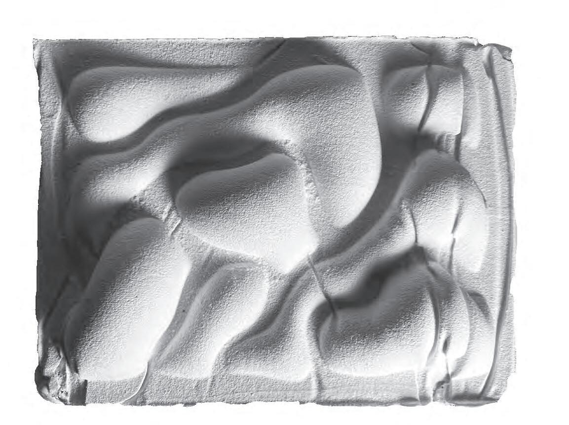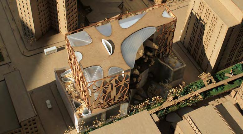 Focusingonhow creationintegrateswith worksexistence,thisspace to simulate the topographythatexisted wentpreviously.The3Dprint iterations,throughmultiple startingwith a solid, curved surface, eventuallyevolvingintoa insolid-meshhybrid.Shown section, the structure