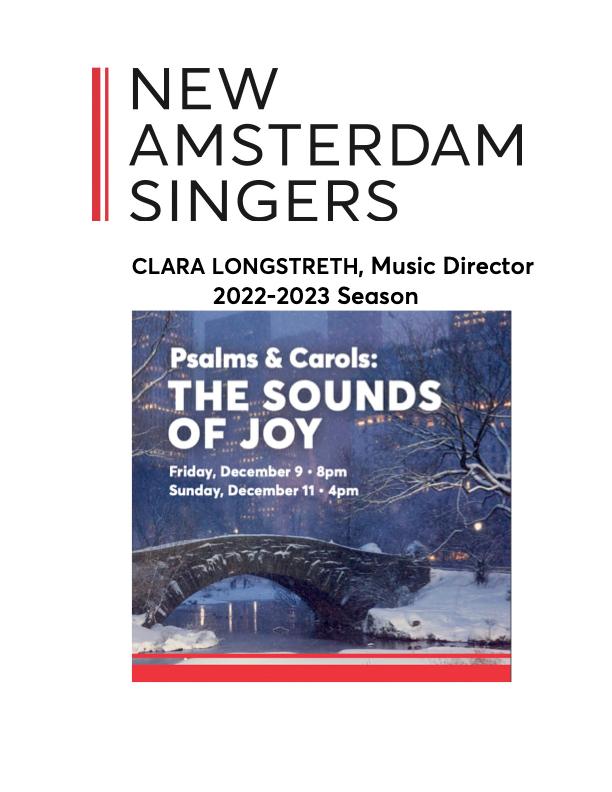 New Amsterdam Singers - The Sounds of Joy - December 9 & 11, 2022 by Abendmusik - Issuu