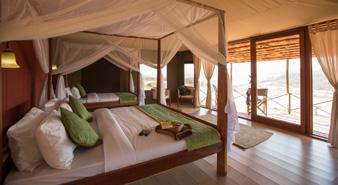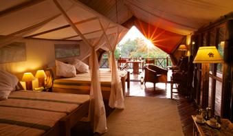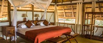 Komfortable Unterkünfte oder bei Zeltsafaris geräumige Zelte in Stehhöhe