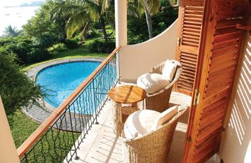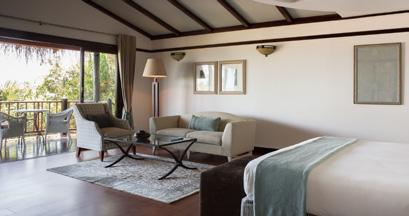 Die 15 gemütlich eingerichteten Zimmer und Suiten sind individuell ge staltet und verfügen über eine eigene Terrasse oder Balkon mit Meerblick, ein en-suite Badezimmer, Internet, Moskitonetz, Safe, Kaffee-/Tee-Zube reiter. Die Acacia Zimmer haben zusätzlich eine Klimaanlage und eine Minibar sowie Balkone mit Meerblick. Die Courtyard Suiten, ebenfalls mit Klimaanlage und Minibar, liegen in einem separaten Gebäude mit Innen hof - zwei in der unteren Etage mit Terrassen und zwei in der oberen Etage mit Balkon und Meerblick. Sie sind sehr großzügig und für Familien mit zusätzlichem Etagenbett oder Schlafsofa für die Kinder ausgestattet.