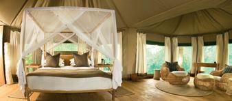 Luxuriöse Unterkünfte oder bei Zeltsafaris große Zelte mit Dusche/WC