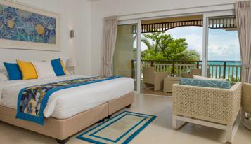 Das Resort verfügt über insgesamt 214 Zimmer, die in 1- und 2-stöckigen Bungalows mit Blick auf Pool und Ozean untergebracht sind. Alle Zimmer sind in sonnigen, unterschiedlichen Farben gehalten und mit eigener Ter rasse oder Balkon, Badezimmer mit Badewanne und separater Dusche, Bademäntel und Haartrockner, Klimaanlage, Deckenventilator, TV, Telefon, WIFI, Kaffee-/Tee-Zubereiter, Minibar und Safe ausgestattet. Die Superior und Beach Zimmer haben zusätzlich eine iPod-Docking-Station. Die De luxe Family Zimmer verfügen über ein zusätzliches Zimmer mit Etagenbett für zwei Kinder.