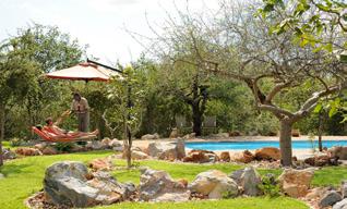 Sanctuary ist gleichzeitig auch das Zuhause von verwa isten oder verletzten Wildtieren. Außerdem schaff t die Lodge Arbeitsplätze für viele San-Buschmänner, einer eth nischen Minderheit. Die Erlöse der Unterkunft werden in diverse Projekte für den Erhalt der San Kultur und für den Artenschutz verwendet.