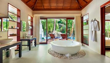 Zimmer: 44 Junior Suiten (81 m²), 8 Oceanview Pool Villen (250 m²), 5 Beachfront Suite Pool Villen (375 m²), 3 Double Suite Villen (675 m²), 1 Shanti Villa (1000 m²)