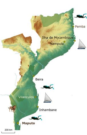 Azura Quilálea könnte eine jener Südseeinseln sein, ein Pa radies, von dem vom Schlechtwetter geplagte Europäer so gerne träumen: weißer Sandstrand, blauer Himmel, klares Wasser, bunte Fische. Doch Azura Quilálea liegt nicht in der Südsee, son dern vor Mosambiks Nordostküste, in einem der artenreichsten Gewässer der Welt. Die 35 ha große Privatinsel Quilálea vermittelt Robinson-CrusoeAtmosphäre, weit abseits des hektischen Lebens der heutigen Zeit.