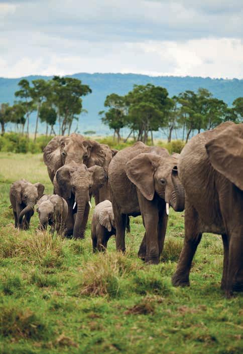 Between looming escarpment and fastflowing river, the lodge is a gorgeous essay in pared-down contemporary safari chic; the abundance and variety of the Maasai Mara’s wildlife astounding. The dining room highlights ingredients harvested from an on-site organic garden.