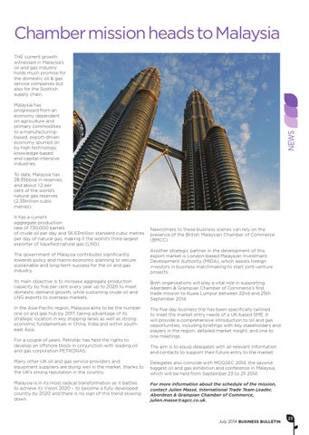 Chamber mission heads to Malaysia THE current growth witnessed in Malaysia’s oil and gas industry holds much promise for the domestic oil & gas service companies but also for the Scottish supply chain.