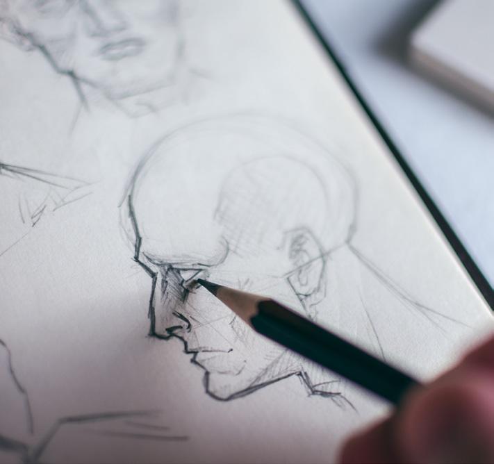 Vi går igenom porträttets grunder, anatomi, ljus/skugga och form. Vi använder och testar olika tekniker och material, allt från teckning till måleri. Kursen avslutas med porträttmodell i 90 minuter och ett personligt samtal kring kursen och din utveckling.