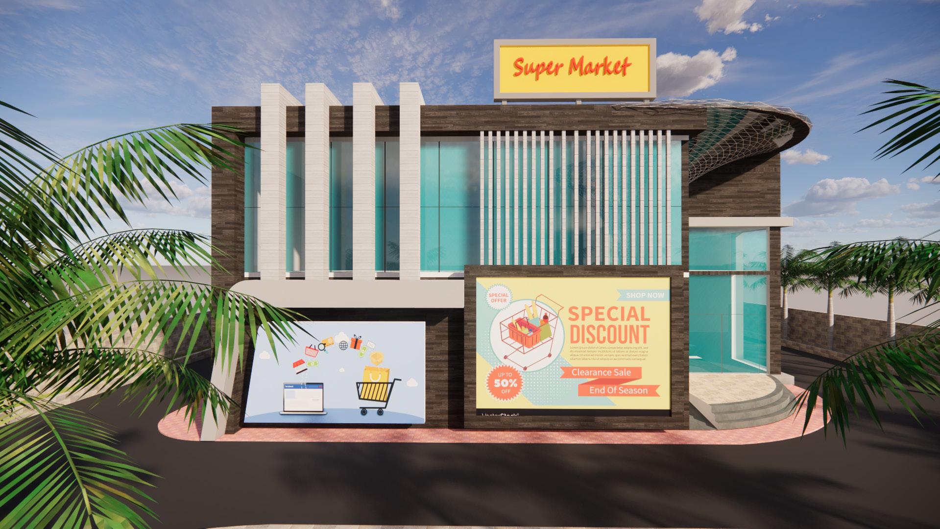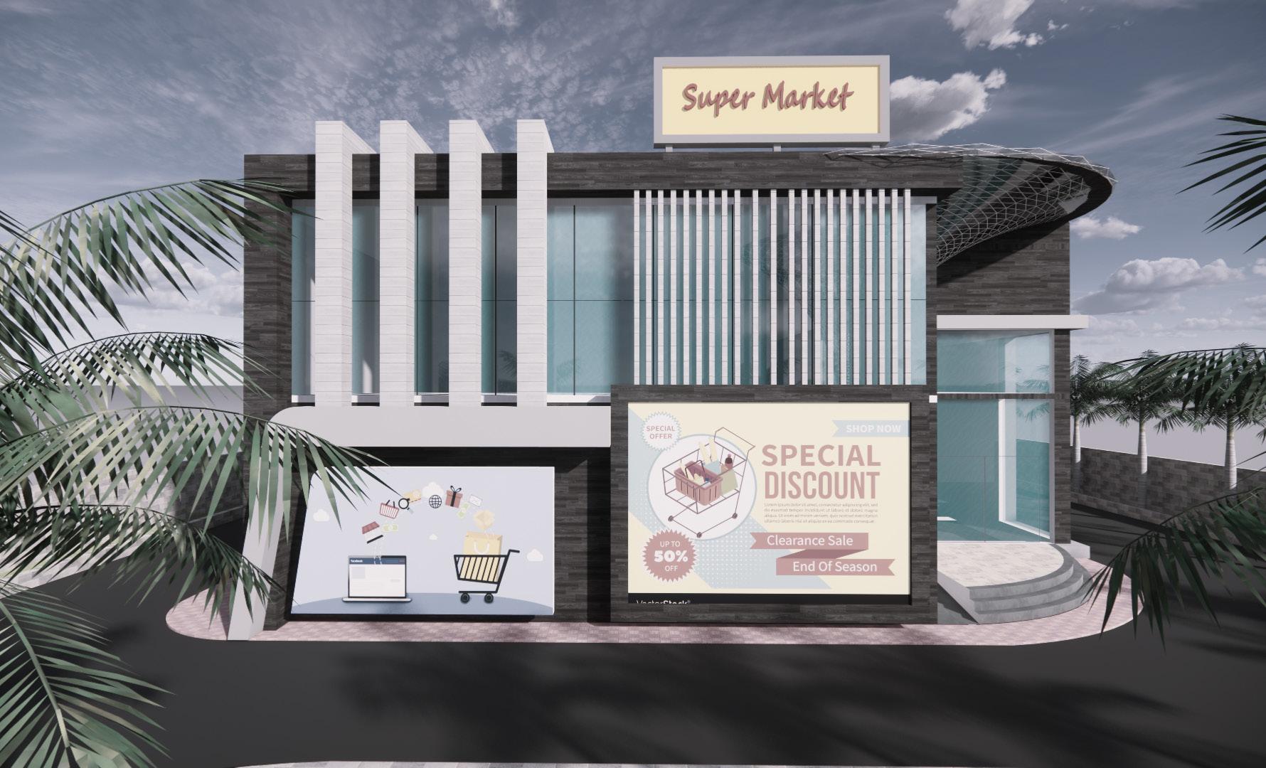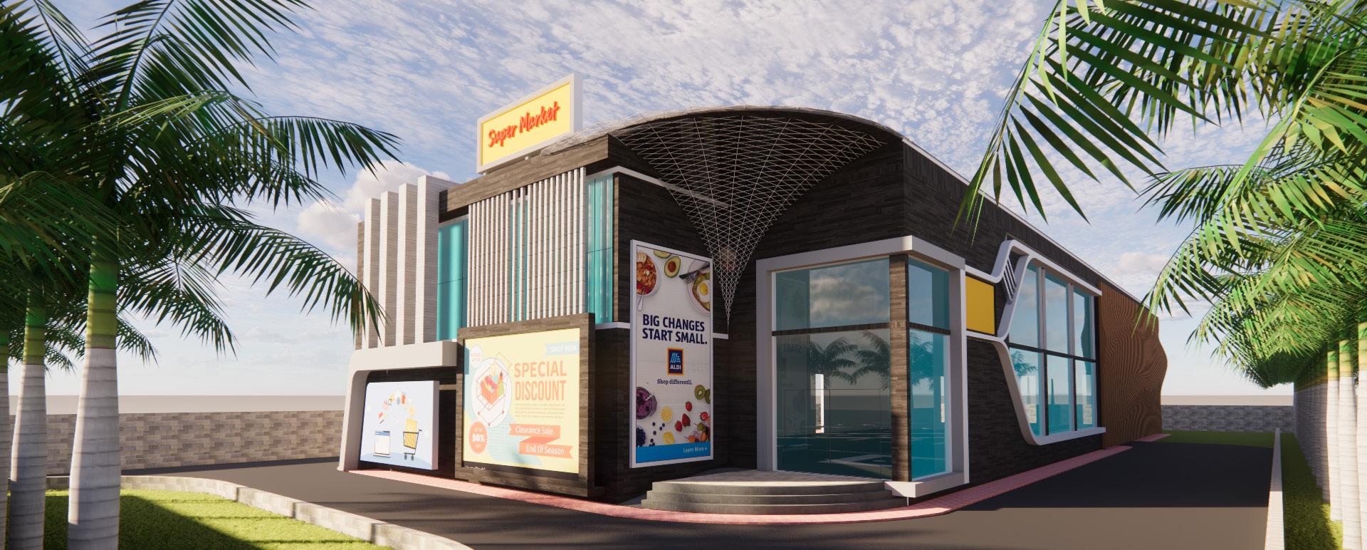 THE DESIGN OF A COMMERCIAL SPACE IS AN OPPORTUNITY TO LEARN THE RELATION BETWEEN THE PUBLIC AND MARKING SECTOR, IN THE PROCESS OF DESIGNING A SUPERMARKET, THE PUBLIC AND COMMERCIAL SECTOR IS KEPT IN MIND. THE DESIGN PROPOSAL DEALS WITH THE INTERACTIVE SPACES TOO. THE PLANNING IS SUCH THAT EVERY SHOP HAS GIVEN EQUAL IMPORTANCE. THE PARAMETIC FACADE GIVES IT A MODERN TOUCH