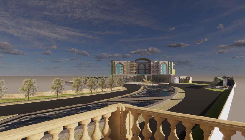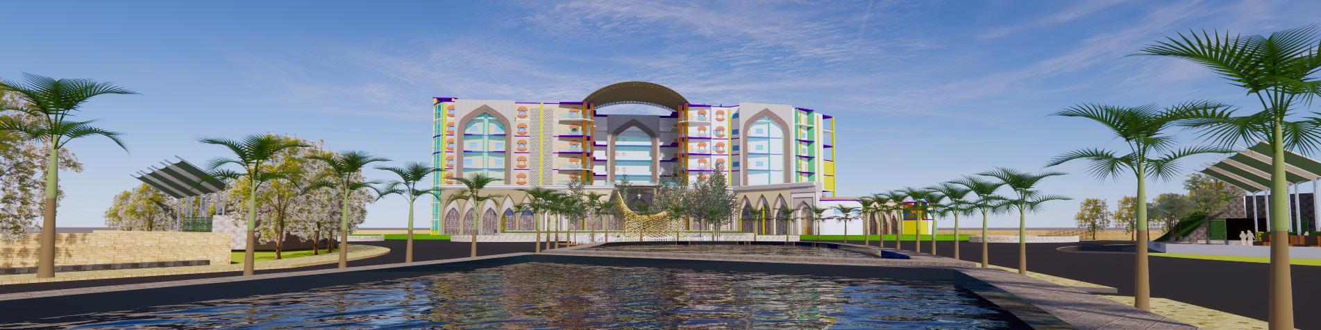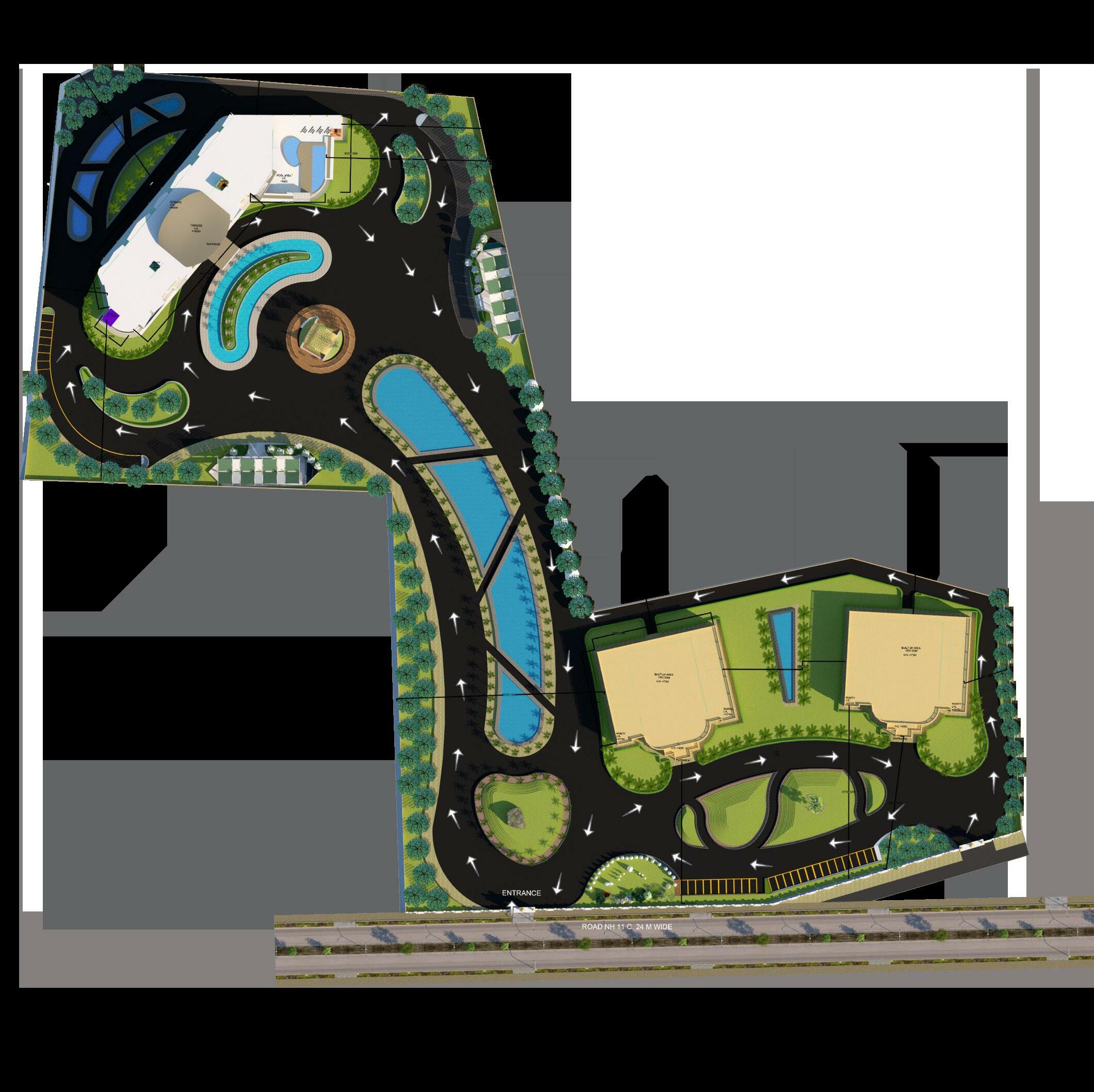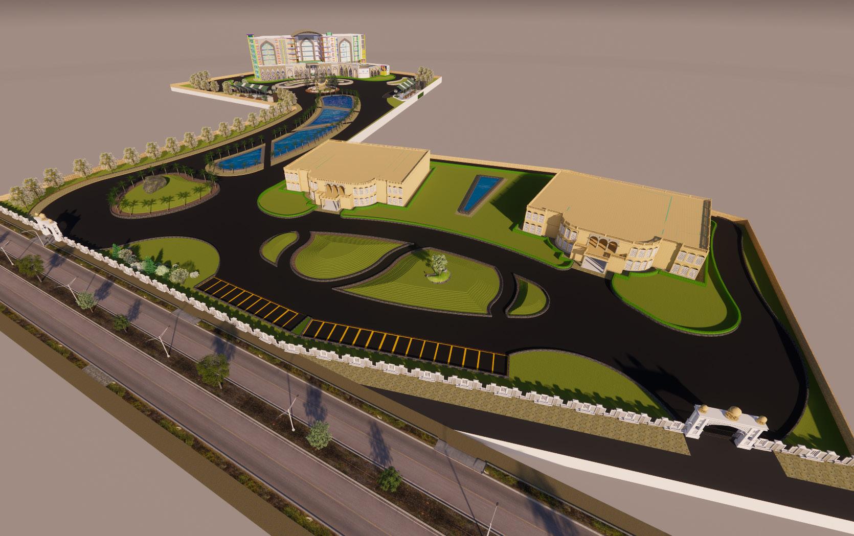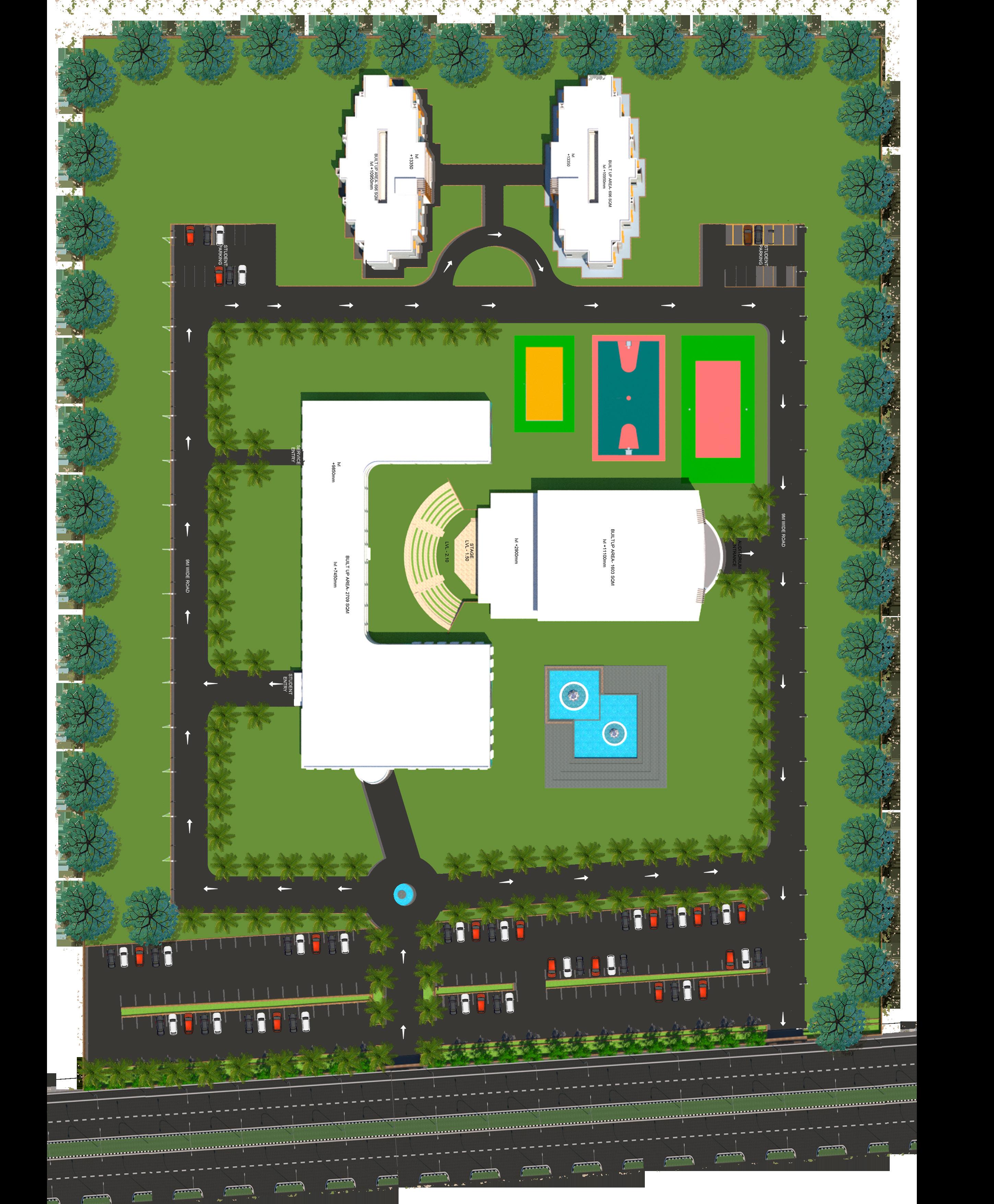 3D VIEWS PROJECT - FIVE STAR HOTEL PLOT AREA 60495 SQM BUILT UP AREA 4226 SQM TOTAL BUILT UP AREA 29600 SQM SETBACKS FRONT 18 M BACK 09 M SIDE 09 M BYELAYS TOTAL PERMISSIBLE FAR 4 TOTAL ACHIEVED FAR 0.33 TOTAL PERMISSIBLE G COVERAGE 24198SQM TOTAL ACHIEVED G COVERAGE 6090SQM TOTAL PERMISSIBLE HEIGHT 63M TOTAL ACHIEVED HEIGHT 37.5M PARKING (200) STAFF TOTAL NO PF ECU (FOUR WHEELER) 32 TOTAL NO OF ECU (TWO WHEELER) 33 (11 UNIT) VISITORS TOTAL NO PF ECU (FOUR WHEELER) 56 TOTAL NO OF ECU (TWO WHEELER) 81 (27 UNIT) N