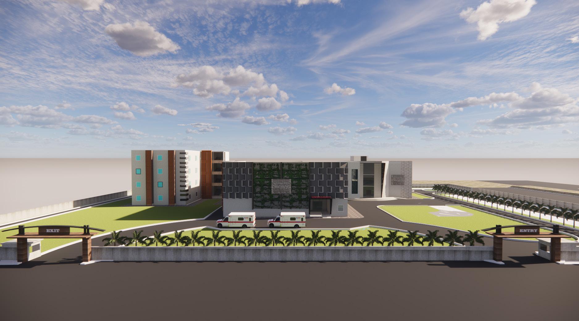 THE PROJECT INTENSION WAS TO CREATE A FULLY FUNCTIONAL 100 BEDDED HOSPITAL DESIGN WITH THE MAXIMUM BENEFITED TO THE PATIENT RESIDING OVER THERE AT THE SIDE OF THE MAIN BUSY ROAD.