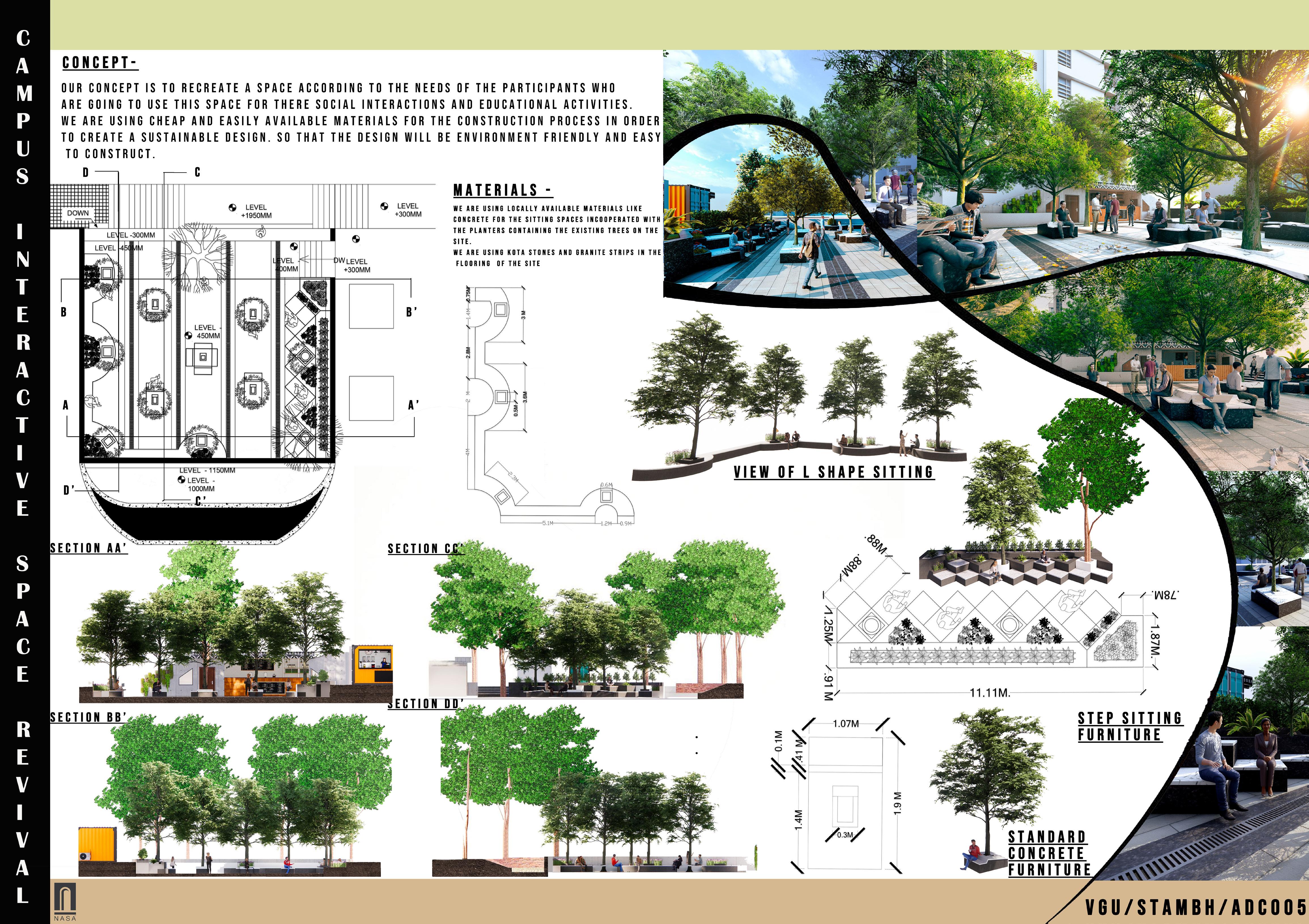 REVIVE 1.0 CAMPUS INTERACTIVE SOACE REVIVAL ARCHITECTURE COMPETATION TO REVIVE THE EXISTING SPACE KEEPING IN MIND THE USER COMFORT, SUSTAINABILITY, AFFORDABILITY, LOCAL MATERIALS ANDPRACTICES. 0 9