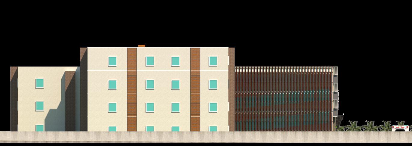 SE c TIONS 3D VIEWS FRONT ELEVATION (NORTH ELEVATION) SIDE ELEVATION (EAST ELEVATION) ELEVATION BASEMENT -2.4M BASEMENT -2.4M PIT LVL -4.2M GROUND LVL +/-0 GROUND LVL +/-0 PLINTH LVL +.6M PLINTH LVL +.6M 1ST FLOOR LVL +4.1M 1ST FLOOR LVL +4.1M 2ND FLOOR LVL +7.6M 2ND FLOOR LVL +7.6M 3RD FLOOR LVL +11.1M 3RD FLOOR LVL +11.1M ROOF LVL +14.6M ROOF LVL +14.6M PARAPET LVL +15.35M PARAPET LVL +15.35M