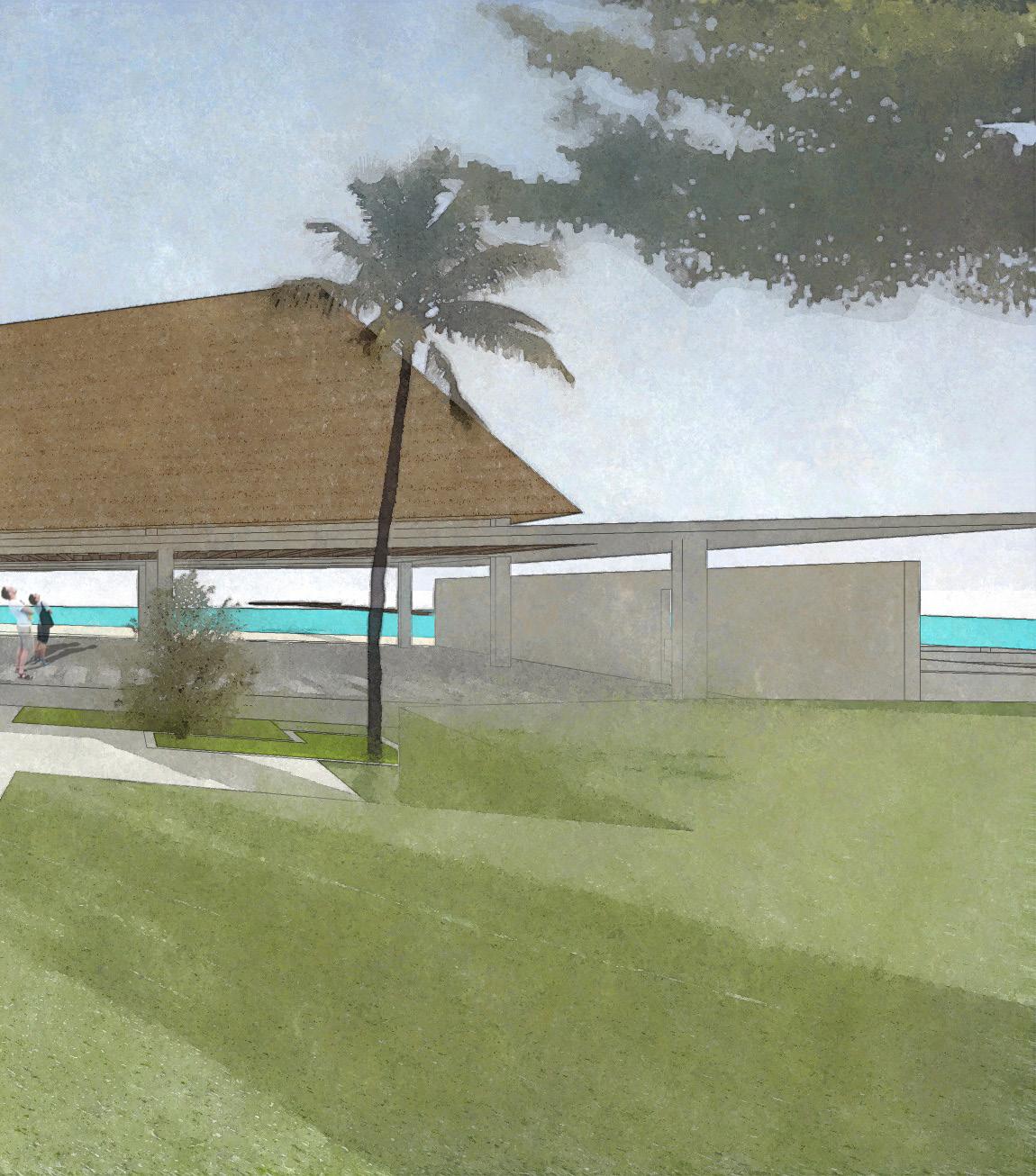 Two building masses were split by a pathway which connects the main road and the beach. The smaller mass is tilted to open visual access to the buildings main beach and road activities to attracts passersby.