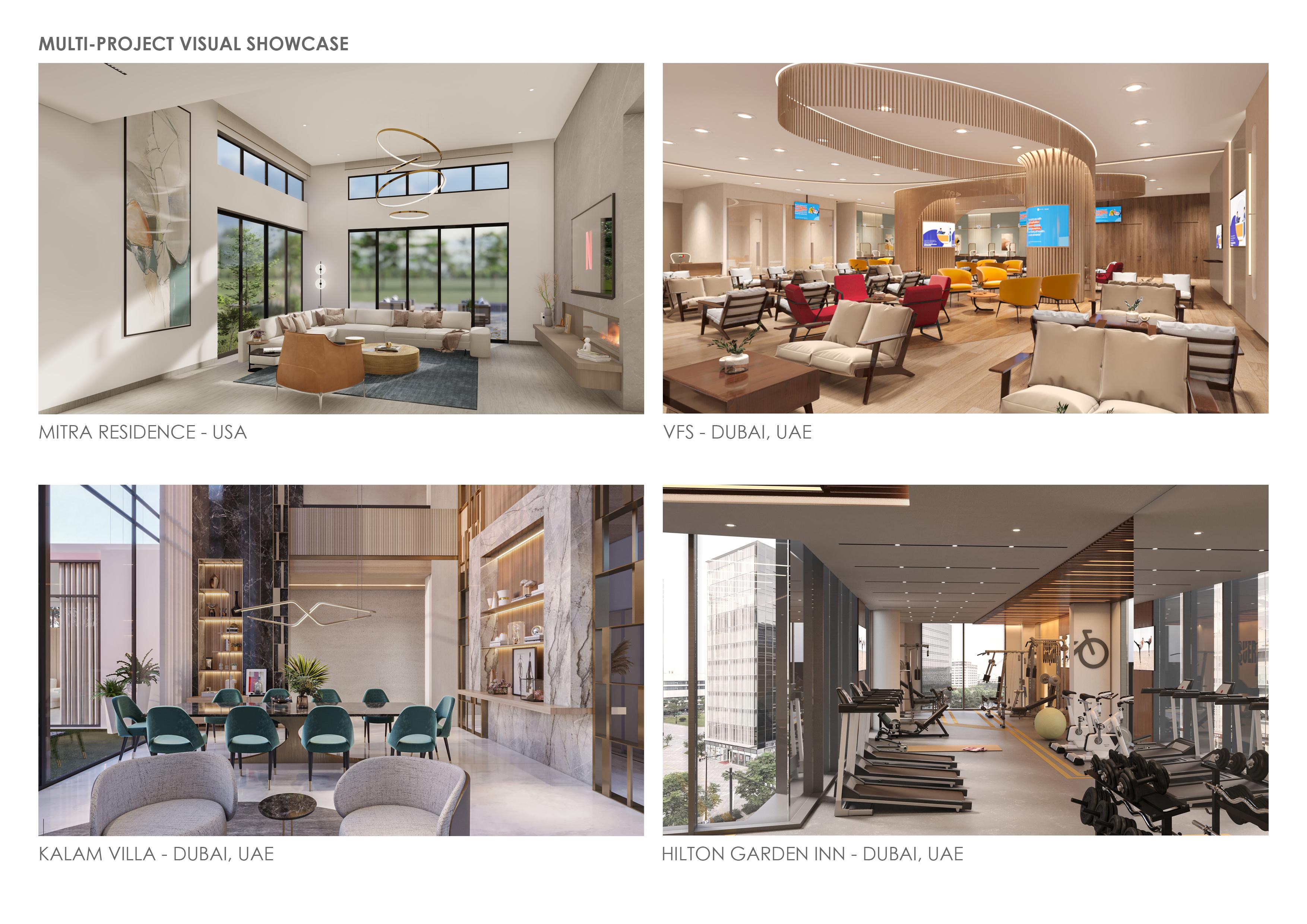 This portfolio showcases a curated selection of architectural and interior design works developed across diverse project typologies in Dubai, UAE, and the USA. It includes residential, commercial, hospitality, and luxury villa designs, reflecting a strong focus on detail, functionality, and aesthetics. Additionally, it features academic BIM projects that demonstrate technical proficiency in Building Information Modelling, model coordination, and digital workflows.